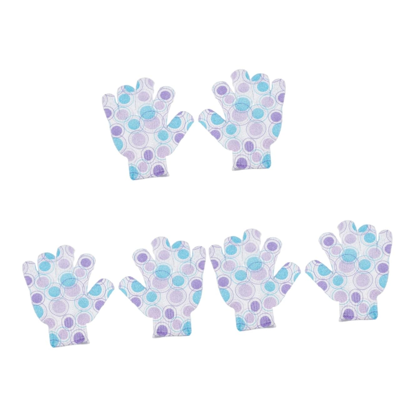 Package Include 3 Pairs x gloves Characteristics - Warm Tips: Dear buyer, due to lighting effect, monitor's brightness, manual measurement, etc., there could be some slight differences in the color and size between the photo and the actual item Printed Bath Gloves. - Color: Random Style Exfoliating Gloves. - Size: About 20x13x2m. - Material: Nylon. - Make your body smooth by removing the dust on the surface of your skin, wiping excess oil in your pores Five Finger Shower Gloves. - The five finger glove type makes it easy to scrub hard-to-reach areas Bath Gloves. - Made of nylon material for durable and long lasting use Shower Gloves. - Suitable for people of all groups. - Deeply cleanses and revives your dull, dry skin. Goods Information Exfoliating Gloves The glove type can help you brush your back conveniently.Shower Gloves It will ffectively remove the dust and excess oil from your skin surface and refresh your skin.Bath Gloves Made of nylon material for durable and long lasting use.Five Finger Shower Gloves Our five finger bath glove will help you to exfoliate skin, body and back to make them smoother, healthier and more radiant after taking a shower