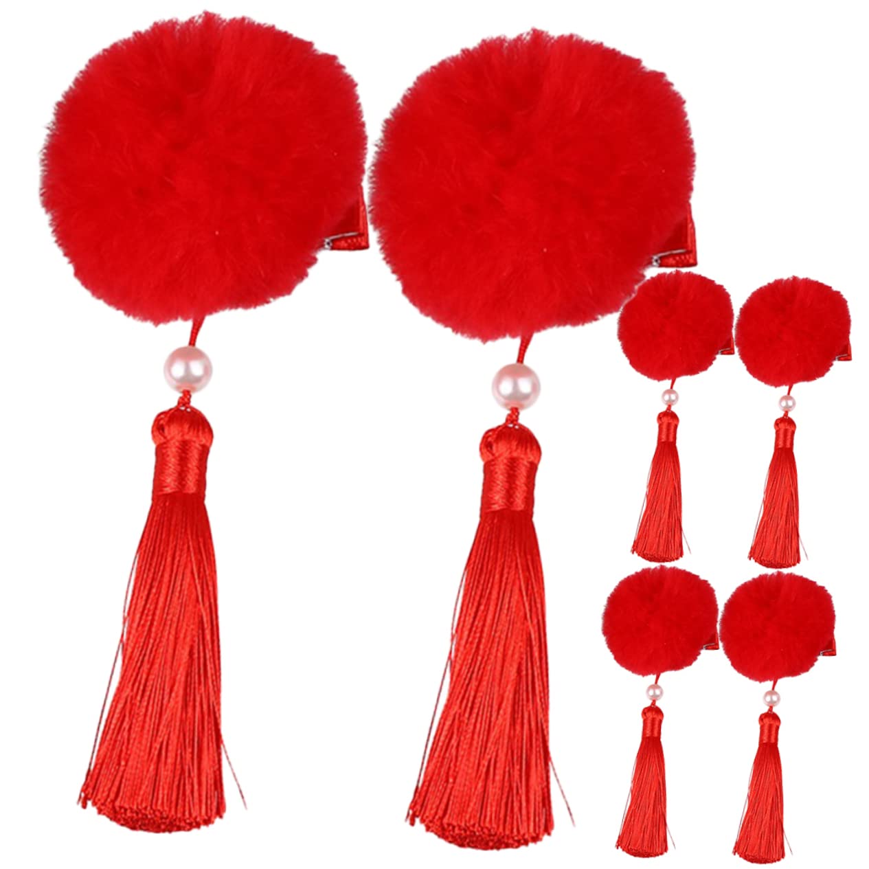 Package List 3 pairs x hair clips Features -Material:Faux furs christmas alligator clips -Color:Red Chinese Style Hair Clip -Size:15.00X6.00X6.00cm/5.89X2.36X2 Pom Pom Hair Clips. - The pom pom hair clips look very sweet and make girl more attractive when wearing girls hair clips. - Suitable size, tassel pendant, provide eye-catching decorative effect, fit for girls dress up decorative hair pin. - decoration. Can be a for your little girls, nieces and family pompom tassel hair barrettes. - Chinese style hair accessory, decorated with fluffy balls and long tassels, sweet and lovely chinese hair stick. - The pompom hair clips feel delicate, wearing it, can make you more beautiful metal hair clips. Goods Information long tassel hair barrettes Red color are classic symbols of traditional Chinese culture, these tassel pompom hair clips are full of traditional Chinese elements, wearing them will bring a strong festive atmosphere to activities.Chinese Style Hair Clip Very delicate and stylish.chinese new year hairpins Also good for girl DIRECTIONS keep clean