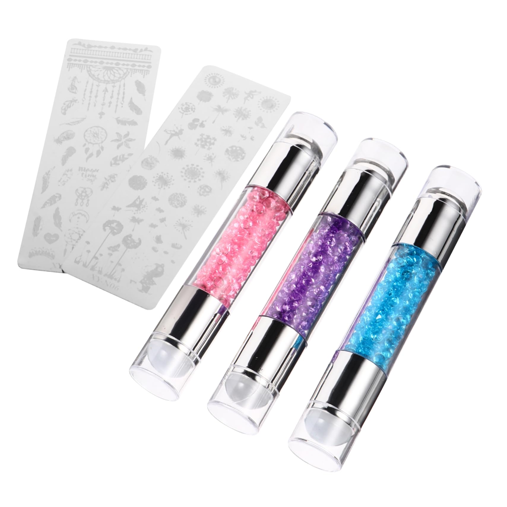 minkissy 3 Sets Double-headed Silicone Stamp Manicure Supplies Nail Stamp Tool Kit Nail Art Stencil Double-end Nail Art Stamper Manicure Tools Double-end Nail Stamper Acrylic Nail Polish 12x4cm As Shown
