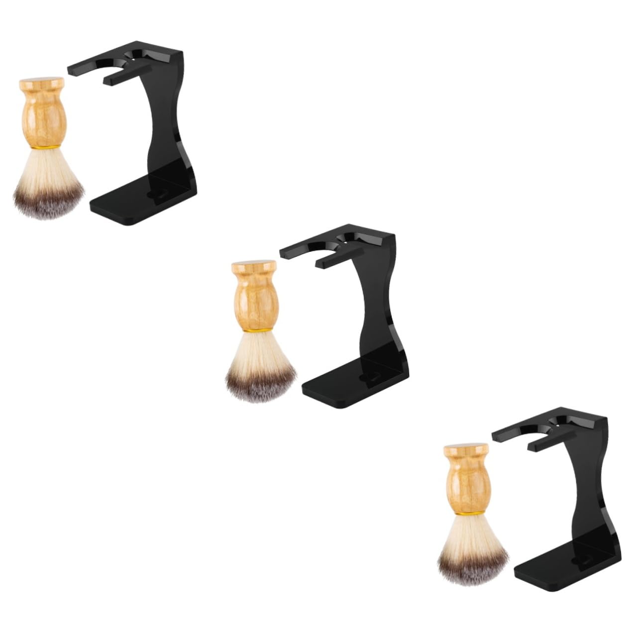 Minkissy 3 sets of shaving kit barber razor shell shaving razor brush brush brush for the face shaving cream display holder for razor beard brush soft wood