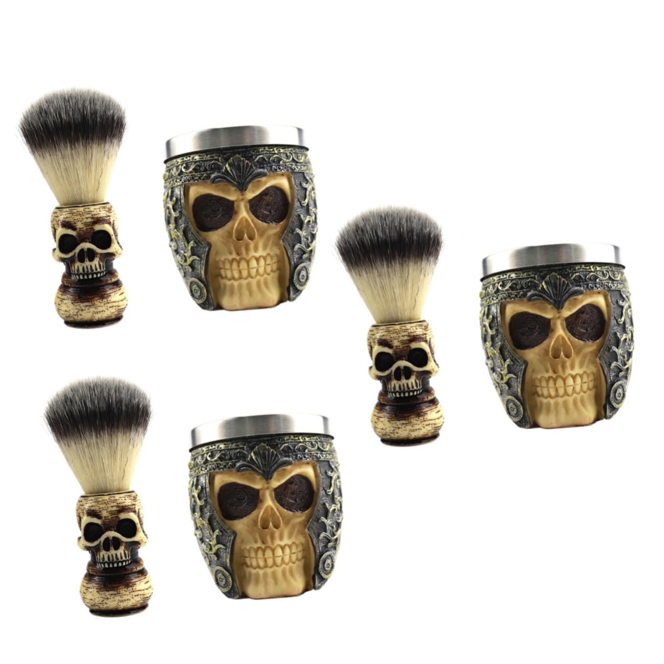 Package list 3 x beard brush 3 x foam shell Characteristics - Size: 9.00 x 7.20 x 7.20 cm/3.54 x 2.83 x 2.83 inch shaving foam shell. - The brush is small and portable: you can take it with you anywhere.Beard brush for men. - Color: as shown.Barturry tools for men. -Material: resin, metal and badger hair-roof hair brush. - easy to keep and carry, professionally designed for beard use. -The perfect gift for your male friends and a nice helper for the daily cleaning of vintage shaving cups and brushes for men. - Smooth handle with a skull pattern, practical for the use of soap for men. - Made from resin material and roof hair, the dust frenzy does not harm your skin. Description of the goods Bart cleaning brush combined with a bladder peel, nourishes almost all types of beards such as mustache, pointed beard, mustache hair and other demanding beards.The shaving cup of hairdressers is made from Harz with medium hardness for a pleasant shaver experience.Shaving foam brush, practically on the go or business shaving brush set: fine and soft brush hair ensure a rich shaving foam for a better razor experience.Razor brush set for men: perfect gift selection for your male friends and a nice helper for the daily everyday cleaning life of the man.Beard brush made of roof hair: the hairbrush typically consists of nylon and bristles;that does not give a smelly smell.Travel razor brush: [Space-saving and portable, practically to take away when traveling or in business.].Roof shaving brush for men: razor brush with manual skull handle and convenient to carry for your long-distance trip. Paketliste 3 x Bartbürste 3 x Schaumschale Eigenschaften – Größe: 9,00 x 7,20 x 7,20 cm/3,54 x 2,83 x 2,83 Zoll Rasierschaumschale. – die Bürste ist klein und tragbar: Sie können sie überall hin mitnehmen. Bartbürste für Männer. – Farbe: wie abgebildet. Bartrasierwerkzeuge für Männer. – Material: Harz, Metall und Dachshaar-Dachshaarbürste. – einfach zu halten und zu tragen, professionell für den Bartgebrauch konzipiertes Bartbürstenwerkzeug. – das perfekte Geschenk für Ihre männlichen Freunde und ein netter Helfer für die tägliche Reinigung von Vintage-Rasierbechern und -pinseln für Männer. – glatter Griff mit Totenkopfmuster, praktisch für die Verwendung von Seife für Männer. – Hergestellt aus Harzmaterial und Dachshaar, schadet die Staubwedelbürste Ihrer Haut nicht. Warenbeschreibung Bartreinigungsbürste kombiniert mit einer Blasenschale, pflegt fast alle Arten von Bärten wie Schnurrbart, Spitzbart, Schnurrhaare und andere anspruchsvolle Bärte. Der Rasierbecher für Friseure ist aus Harz mit mittlerer Härte hergestellt Für ein angenehmes Rasiererlebnis. Rasierschaumpinsel, praktisch für unterwegs oder geschäftlichRasierpinsel-set: feine und weiche bürstenhaare sorgen für einen reichhaltigen rasierschaum für ein besseres rasiererlebnis. Rasierpinsel-set für männer: perfekte geschenkauswahl für ihre männlichen freunde und ein netter helfer für den täglichen reinigungsalltag des mannes. Bartbürste aus dachshaar: die haarbürste besteht typischerweise aus nylon und borsten; das keinen stinkenden geruch abgibt. Reise-rasierpinsel: [platzsparend und tragbar, praktisch zum mitnehmen auf reisen oder im geschäftsleben. ]. Dachs-rasierpinsel für männer: rasierpinsel mit manuellem totenkopfgriff und bequem zu tragen für ihre fernreise.