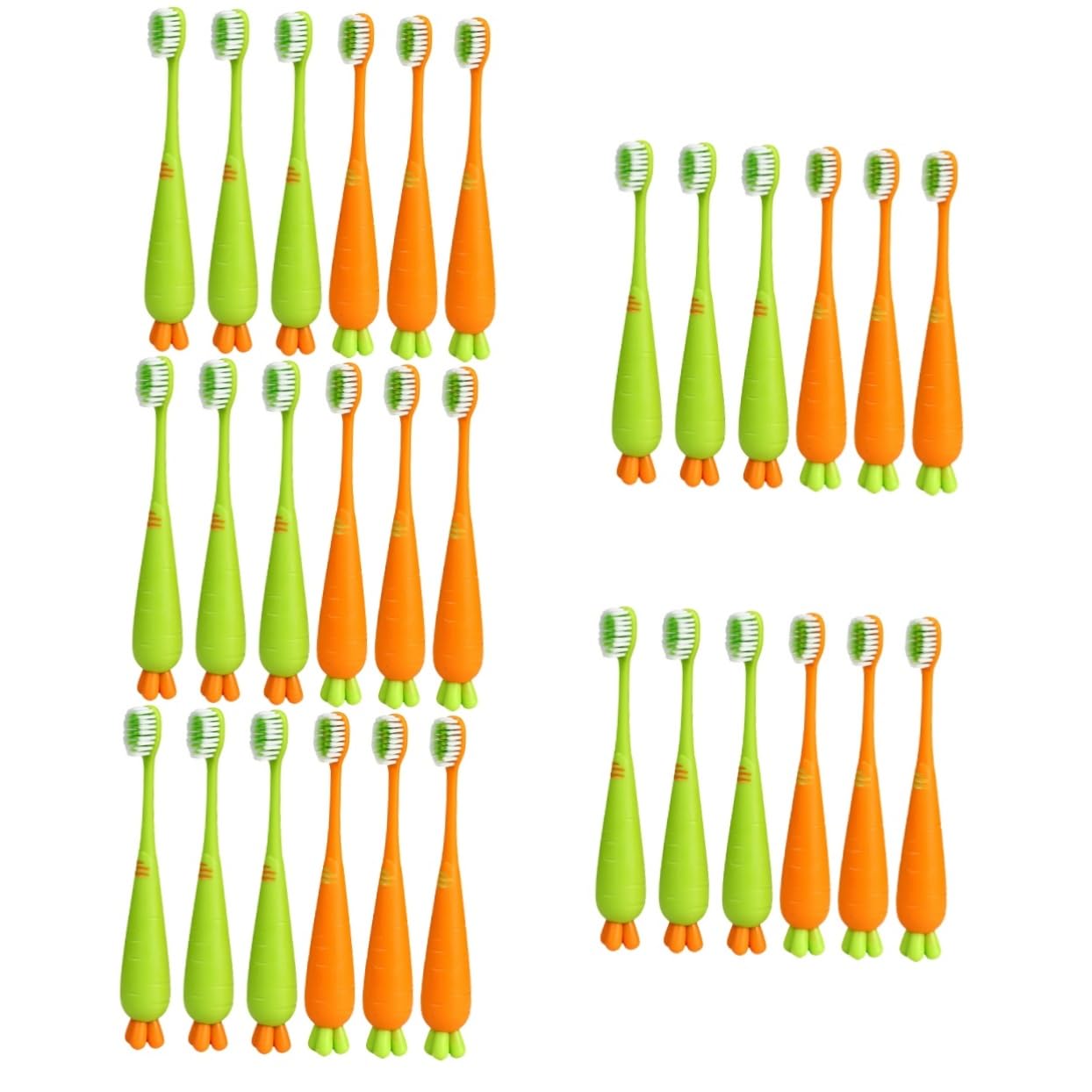 Package list 30 x children's toothbrushes Characteristics -Material: PP, TPR children's toothbrush -Kol: different colors children's toothbrush -Size: 15.00 x 2.20 x 1.40 cm/5.89 x 0.86 x 0 carrot and child toothbrush. - Ergonomic brush head, matching the shape and mechanics of the children's toothbrush with soft hair structure. - With cartoon and beautiful carrot -shaped design, your children will encourage your children to use this soft children's toothbrush. - Hand toothbrushes for children help to solve oral health problems in babies and keep the mouth and teeth clean. - The massage toothbrush can gently stimulate and massage the gums with safe bristles.Travel toothbrush for children. - Start early with this toothbrush to develop oral hygiene habits for children.Manual children's toothbrush. Description of the goods Toothbrush made of great materials, comfortable and durable.Training tooth cleaner with a beautiful shaped design, your children will fall in love with brushing your teeth.Carrot children's toothbrush can clean teeth effectively and quickly.Colonization toothbrush If you are looking for a children's toothbrush, you must not miss our smooth toothbrush.Deadly head desk: light and portable.This toothbrush is suitable for travel or home use.Hand toothbrush for children: ergonomic brush head, matching the shape and mechanics of the dental structure.The soft bristles of the toothbrush prevent the decline in the teeth through aggressive brushing your teeth, with comprehensive cleaning function, also suitable for tongue cleaning.Scissors: helps to loosen the baby's oral health problem and keep the mouth and teeth clean.Children's toothbrush: With the cartoon design and the pretty carrot-shaped design, you will encourage your children to use them. Paketliste 30 x Kinderzahnbürsten Eigenschaften -Material: PP, TPR Kinderzahnbürste -Farbe: verschiedene Farben Kinderzahnbürste -Größe: 15,00 x 2,20 x 1,40 cm/5,89 x 0,86 x 0 Karotten-Kinderzahnbürste . - Ergonomischer Bürstenkopf, passend zur Form und Mechanik der Kinderzahnbürste mit weicher Haarstruktur. – mit Cartoon und schönem karottenförmigen Design wird es Ihre Kinder dazu anregen, diese weiche Kinderzahnbürste zu verwenden. – Handzahnbürsten für Kinder helfen, Mundgesundheitsprobleme bei Babys zu lösen und Mund und Zähne sauber zu halten. – Die Massagezahnbürste kann das Zahnfleisch mit sicheren Borsten sanft stimulieren und massieren. Reisezahnbürste für Kinder. - Beginnen Sie früh mit dieser Zahnbürste, um Mundhygienegewohnheiten für Kinder zu entwickeln. Manuelle Kinderzahnbürste. Warenbeschreibung Zahnbürste aus tollen Materialien, bequem und langlebig. Trainingszahnreiniger mit einem schönen geformten Design, Ihre Kinder werden sich in das Zähneputzen verlieben. Karotten-Kinderzahnbürste kann effektiv und schnell Zähne reinigen. Kleinkindzahnbürste Wenn Sie auf der Suche nach einer Kinderzahnbürste sind, dürfen Sie sich unsere geschmeidige Zahnbürste nicht entgehen lassenKinderzahnbürsten: beginnen sie frühzeitig mit dieser zahnbürste, um mundhygienegewohnheiten für kinder zu entwickeln. Totenkopf-schreibtisch: leicht und tragbar zum tragen. diese zahnbürste eignet sich für reisen oder den heimgebrauch. Handzahnbürste für kinder: ergonomischer bürstenkopf, passend zur form und mechanik der zahnstruktur. die weichen borsten der zahnbürste verhindern zahnrückgang durch aggressives zähneputzen, mit umfassender reinigungsfunktion, auch zur zungenreinigung geeignet. Scherenstoßstange: hilft, das mundgesundheitsproblem des babys zu lösen und mund und zähne sauber zu halten. Kinderzahnbürste: mit dem cartoon-design und dem hübschen karottenförmigen design wird sie ihre kinder dazu anregen, sie zu benutzen.minkissy 30 Stk Karotte Zahnbürste Bulk-Zahnbürsten Kinderzahnbürsten mit weichen Borsten Zahnbürsten für Kinder Reisezahnbürste kinder zahnbürste Handzahnbürste für Kinder