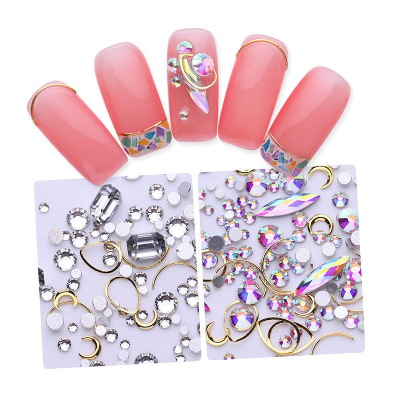 Package Include 4 Boxes x Nail Studs Characteristics - Material: Alloy and Rhinestones Nail Decals. - Package Size: About 6x6x1.8cm Nail Stickers. - Color: As shown. - SPARKLE GEMS - These diamante gems can serve as beautiful ornaments and will shine under the illumination of lights, which adds sparkle and glamour for your nails Nail Studs. Nail Art - 3D DECOR - These designs are raised up slightly from the surface of your nail, creating an especially eye-catching effect Rhinestones Nail Art Decoration. - PACKAGE LIST - 4 Boxes Gold Moon Metal Nail Studs 3D Nail Decoration (4 patterns) - VARIOUS STYLE - Delicate nails art decoration with various styles, colors and sizes, satisfy your different needs of nail art, give you plenty to choose. - METAL MATERIAL - The metal pieces proved to be slightly easier to apply and place into the exact position you wish, and they are a little easier to press down and set into the polish or glue that you use. Goods Information rhinestone jewelry Vivid colors make your nails sparkling and add shiny colors to your nails, which makes you look more charming.Nail Studs You also can use them to decorate your phone, home, glass, ect.Nail Decals You could easily DIY your nailswith these beautiful rhinestones.Rhinestones Nail Art Decoration We provide diverse shapes and patterns for different design of your own nail art DIRECTIONS keep clean SAFETY WARNING 1 See more