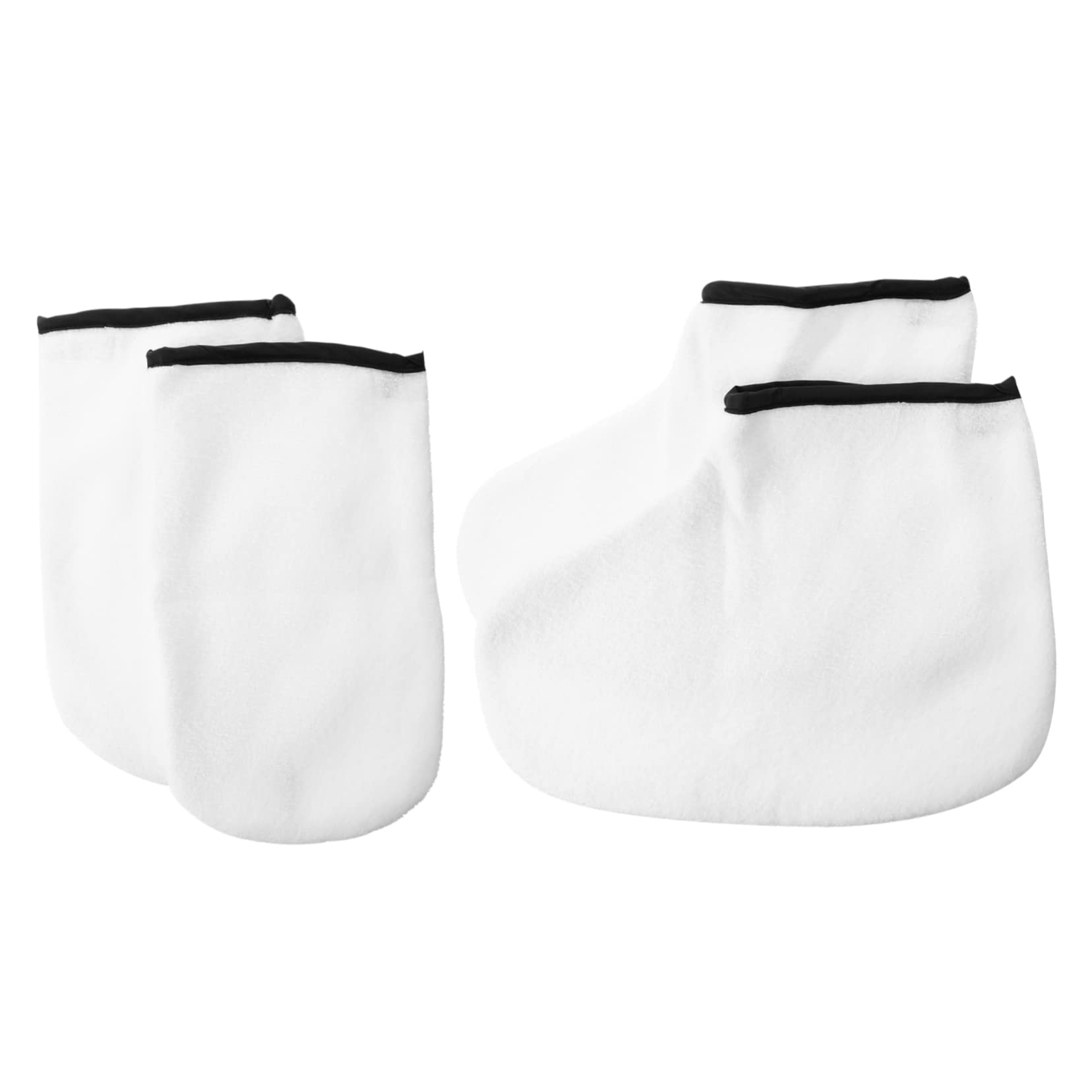 Package Include 2 Pairs x socks 2 Pairs x gloves Features - Size: 25.00X16.00X1.00cm/9.82X6.29X0.39inch paraffin socks covers. - Color: White Foot Spa Covers. - Material: Polyester, Knitted Fabric paraffin wax foot bags. - With these wax SPA helpers, you can soothe, moisturize, and rejuvenate the dryness and roughness of your hands and feet Heat Preservation Mitten. - Help to penetrate the nutrients and essence into your skin for better absorption, maximizing the effect of your paraffin wax bath treatment wax hand gloves. - paraffin wax bath, hot wax , wax care treatment to the of and your daily tiredness Feet Care Mask. - Suitable for personal daily skin care, home wax SPA DIY, and professional SPA or salon services sap foot covers. - Made of fully washable and reusable material, they are after use for your convenience paraffin wax gloves. Goods Description Thickened Gloves Are you suffering from , cracked skin, skin peeling, rough skin on your hands and feet? A simple paraffin treatment or other skin care for your hands and feet would make a huge difference! The mitts and boots are well made of terry cloth, soft, comfortable and durable