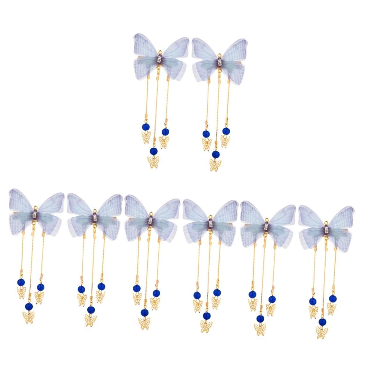 minkissy 4 Pairs Hanfu Butterfly Headdress Han Chinese Costume Accessories Hanfu Hair Clip Fabric Hairpin Kimono Hair Accessories Hair Barrettes Metal Hair Clips Jewelry Child Tassel Alloy