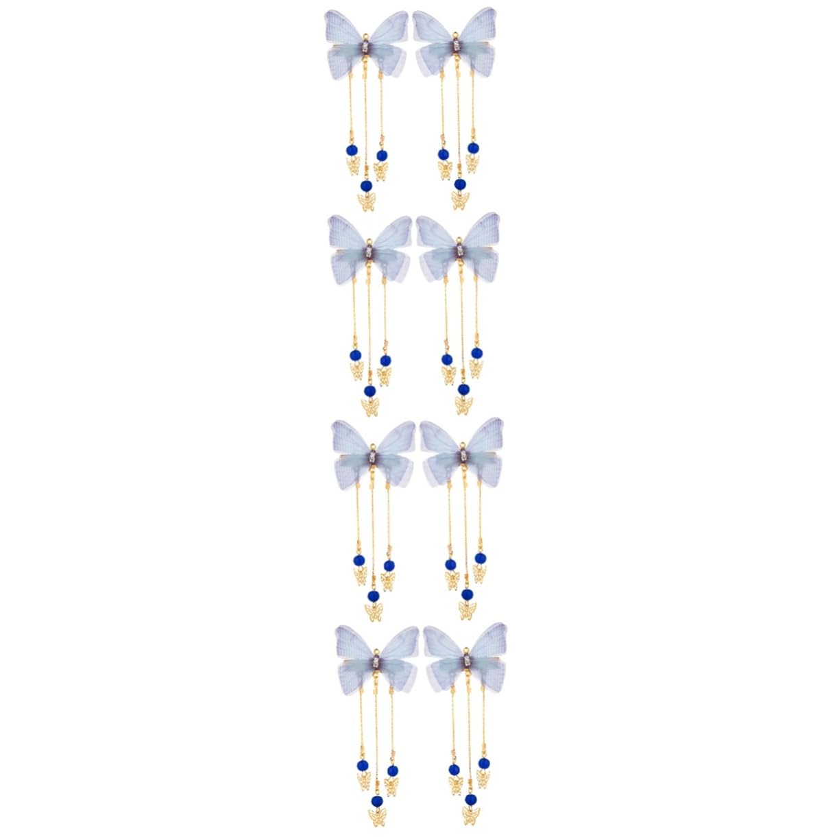 Package List 4 Pairs x hair clips Features -Material:Alloy chinese hair accessories - Color: Blue metal hair clips - Size: 16.00X5.00X1.00cm 6.29X1.97X0 styling hair clips. - These tassel hairpins go well with many costumes, beautifully paired with dress and more Chinese vintage clothes girls hair accessories. - Especially festival or party, dress matching. Best for girl hair clips. - girl to wear in some occasions, such as festivals, photography props, travel and so on hair clips. - Grip the hair firmly without falling, make attract everyone' s eyes and become a shining star girl hair accessories. - Fashion and gorgeous tassel hair barrettes, can add glamour definitely to girl hairstyles tassel hairpin. Goods Information hair accessories Excellent craft, carefully down to every detail to give it a chic and pretty look.girl hair accessories Fine workmanship ensures practicality and durability.chinese hair accessories Durable and sturdy for long-lasting use.jeweled hair clips Wearing them will highlight the appearance, appearing in the hair, giving a different beauty for your little onesTemperament hair clip-- grip the hair firmly without falling, make attract everyone' s eyes and become a shining star. Aesthetic hair accessories-- the butterflies clips are more textured and delicate. the fringed part is vivid, showing your charm at all times. Hair clips for thick hair-- these tassel hairpins go well with many costumes, beautifully paired with dress and more chinese vintage clothes. Traditional chinese hairpin-- girl to wear in some occasions, such as festivals, photography props, travel and so on. Han chinese costume accessories-- decoration, make your little girl happy and become a more adorable.