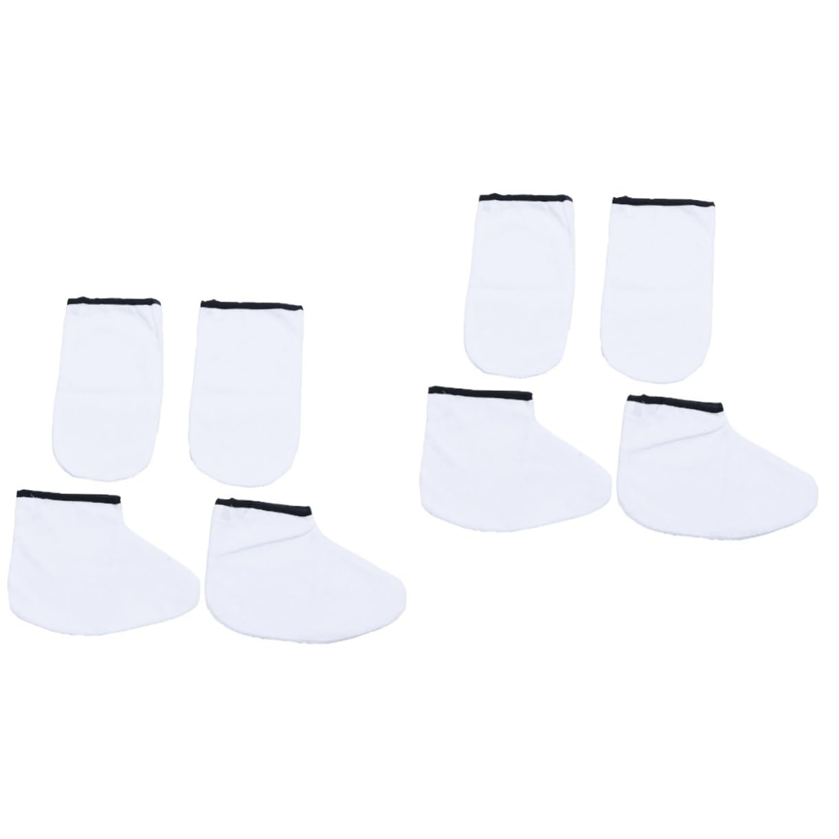 Package List 2 Pairs x gloves 2 Pairs x foot cover Features - Material: Cotton Paraffin Wax Bath Gloves & Booties. - Packing Size: Approx. 27x23x2cm Insulated Gloves. - Color: White, Black paraffin wax gloves. - Warm tip: Dear buyer, due to lighting effect, monitor's brightness, manual measurement and etc., there could be some slight differences in the color and size between the photo and the actual item wax bath gloves. - Made from cotton, comfortable to use soft thermal hand mittens gloves paraffin wax gloves terry cloth mitts spa bath gloves heat tanning mitt wax bath gloves foot spa cover. - Fully washable and specially designed to maximize heat retention as part of a paraffin wax treatment heat tanning mitt. - Very and cozy, providing you an awesome relaxing feeling Foot Spa Cover. - Keep your hands and feet warm with the hot paraffin to give you a good effect for nourishment's penetrate into your skin Wax Gloves. Goods Description Wax Bath Hand Mitts Our professional paraffin wax warmer protection kit, including 1 pair of hand gloves and 1 pair of foot cover sock. Insulated Gloves Made from cotton, durable to use.Paraffin Wax Bath Gloves & Booties Convenient and easy to get on by yourself