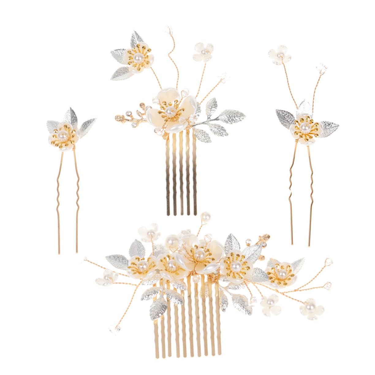 Package List 4 x Bridal Hair Comb 4 x Bridal Hairpins Characteristics -Size: About 16.00X9.00X30.00cm/ 6.29X3.54X11.79in rhinestone hair accessories. -Color: Golden Wedding Hair Pin. -Material: Zinc alloy wedding decor. -Exquisite headdress, nice bridal hair accessory, elegant and charming, make you look more attractive Hair Comb for Bride. -Multi-function, fit for wedding, proms, cosplay, birthday, Christmas, anniversary, carnival or any other special day Decorative Hair Comb. -Delicate, attractive, elegant and fashionable hair accessory, highlight your appearance, easily grasp people's attention pearl hair accessories. -Very delicate and elegant with chic ornaments design, looks exquisite and charming Hair Comb. -It is made of high class and , which has the Wedding Hair Comb. Goods Information bride headpiece Eye-catching bride hair comb decoration for most women, girls and ladies.hair decor Make you so stand out in the crowd or the wedding party.floral hair clip Hold hair tightly without pulling your hair, don't worry about the situation that the headdress drop suddenlyExquisite hair comb-- easy to put on and creates an instant stunning hairstyle. suitable for women, girls, brides and bridesmaid. Bride-- it is made of high class and , which has the . Wedding bride-- a unique for you or your girlfriend, friends, family and so on for christmas, new year, birthday, and other some festivals. Hair comb for bride-- very delicate and elegant with chic ornaments design, looks exquisite and charming. Wedding-- multi-function, fit for wedding, proms, cosplay, birthday, christmas, anniversary, carnival or any other special day.