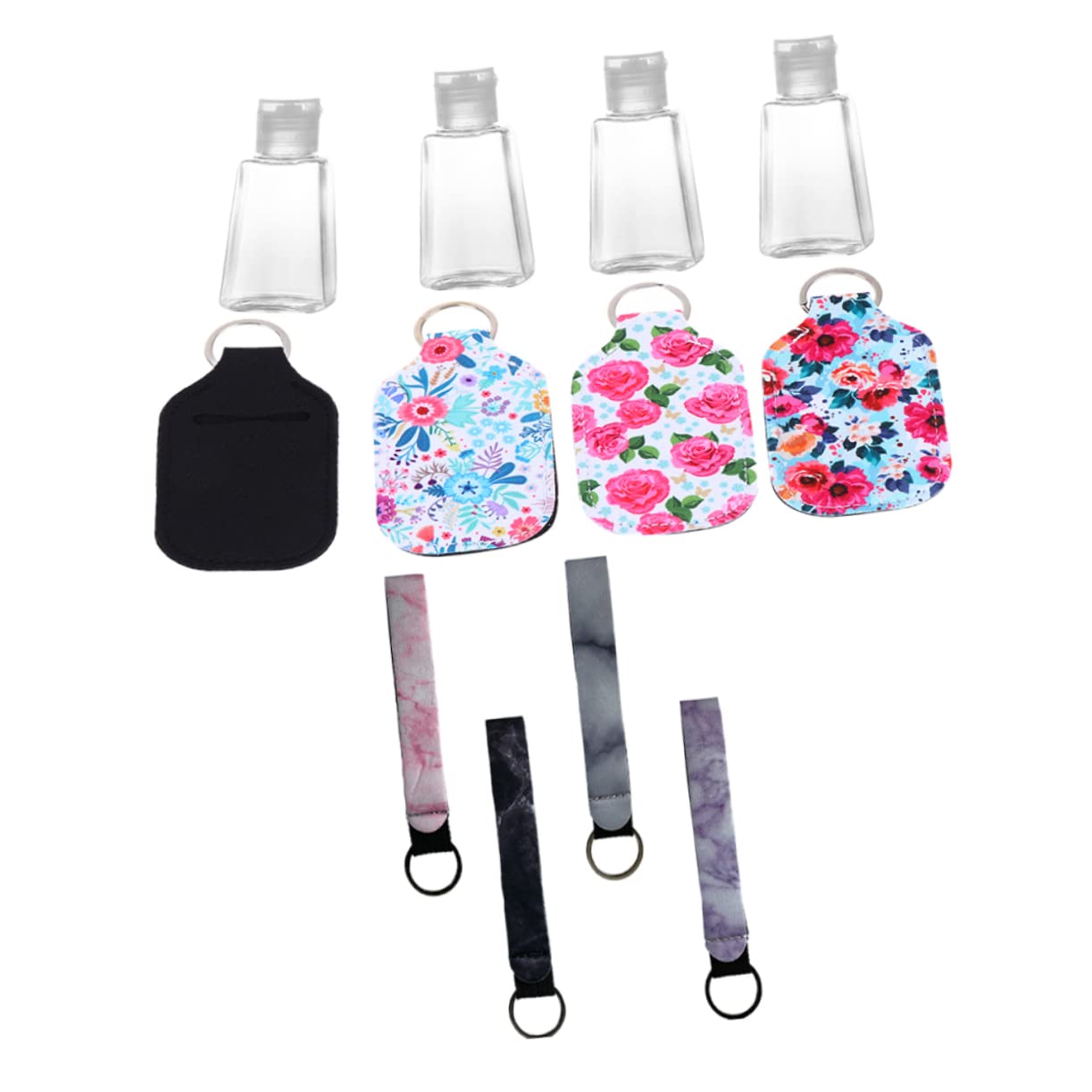 Package Include 4 x strip 4 x keychain 4 x empty bottle Features - Color: Mixed keyring. - Material: Neoprene clear travel bottles. - Size: About 10x6x2cm/3.94x2.36x0.79 inch empty squeeze tubes. keychain bottle - Easily attaches to your backpack, stroller, gym bag, key ring and more! key holder - Each includes an empty bottle hand soap dispenser. - for different toiletry products such shampoo, liquid soap, and other liquid toiletries bottle dispenser. - You can insert the bottles into our keychain holder travel bottles for toiletries. - Suitable for both men, women, boys and girls to use shampoo travel bottle. Goods Information hand soap bottle Made of premium neoprene.liquid bottle The kit will make your life easier, no more fishing around in the purse or pockets for or lipstick, attaching it to your keyring, purse hardware, backpack and lanyard