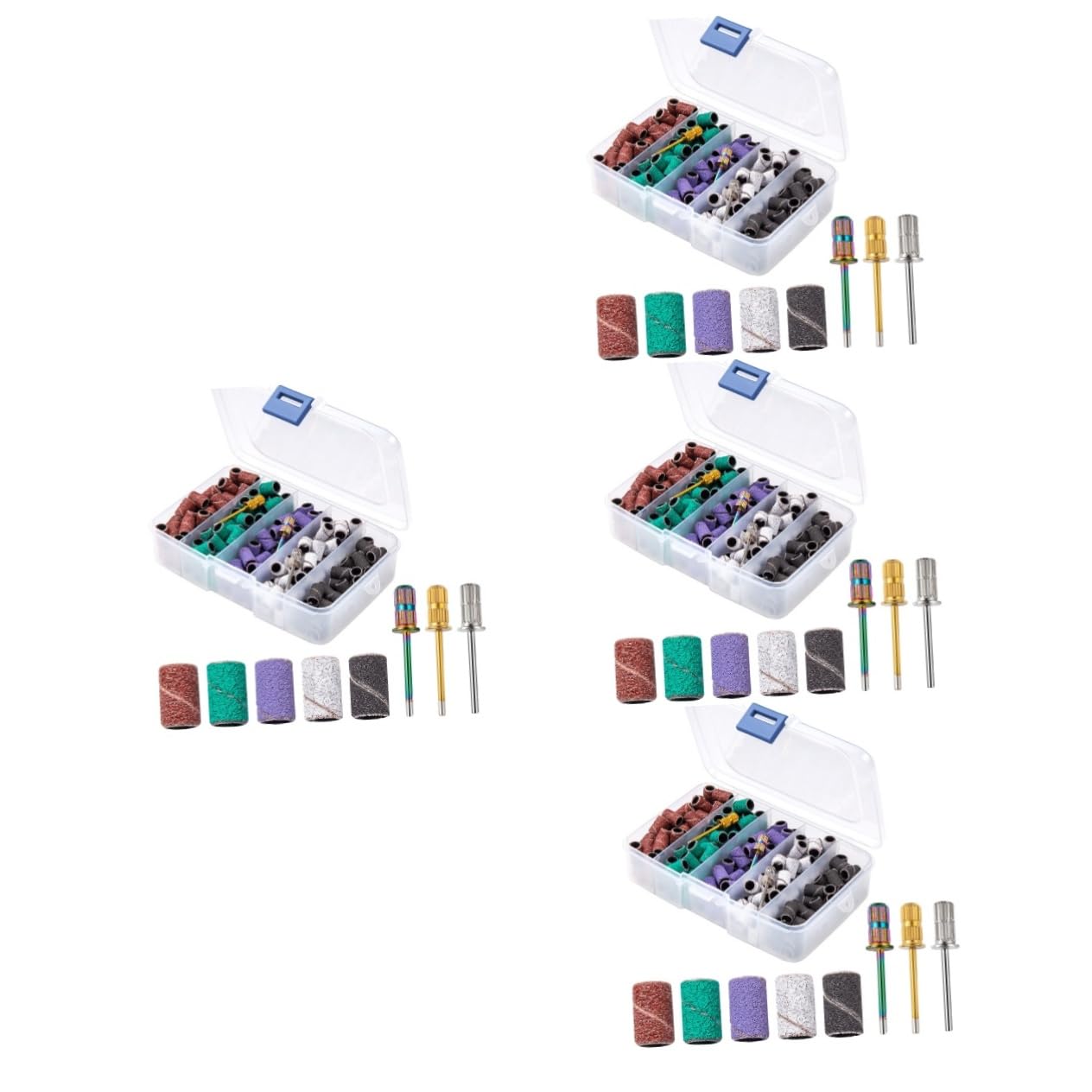 minkissy 4 Sets Nail Polish Set Professional Nail Drill Nail Grinding Sanding Bands Nail Sand Rings Nails Kit Nail Tool Sanding Bands for Nail Drill Fine Grit Manicure Alloy Nail Tape