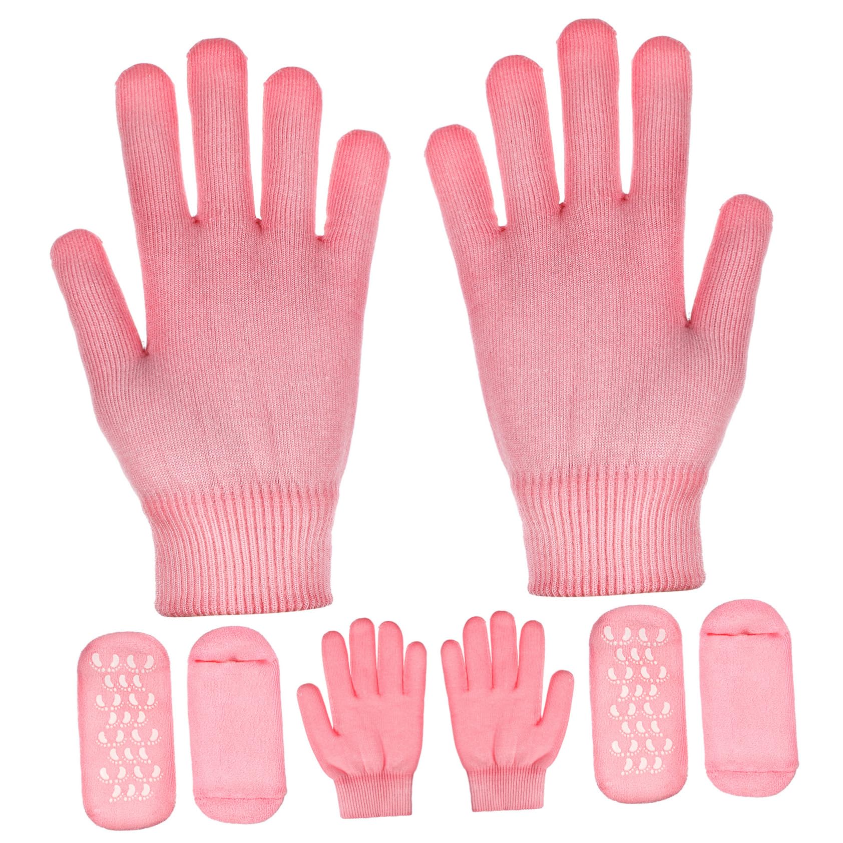 Moisturizing socks-- widely application: moisturizing gloves and socks are suitable for feet of most size, these gloves and socks can be worn and take off easily. Moisturizing foot socks-- good using experience: moisturizing socks glove set with full cover design will bring you a better supple and moisturizing effect. repair hands, feet, heels, toes and other skin problems such as hard and rough. Foot care socks-- deep moisturizing: the full cover design of gel emulsion sock glove set will bring you better softness and moisturizing effect. the continuous release of mineral oil will repair dry roughness of hands, feet, heels, toes and other skin problems. Moisturizing gloves and socks-- breathable and skin- friendly: the socks and gloves are breathable and skin- friendly design, it is very suitable for daily home wear. a for you. Hand skin care gloves-- multifunctional: the set also moisturizes the skin of the entire foot and hands, leaving them looking natural and healthy, moisturizing and smooth, and increg elasticity.