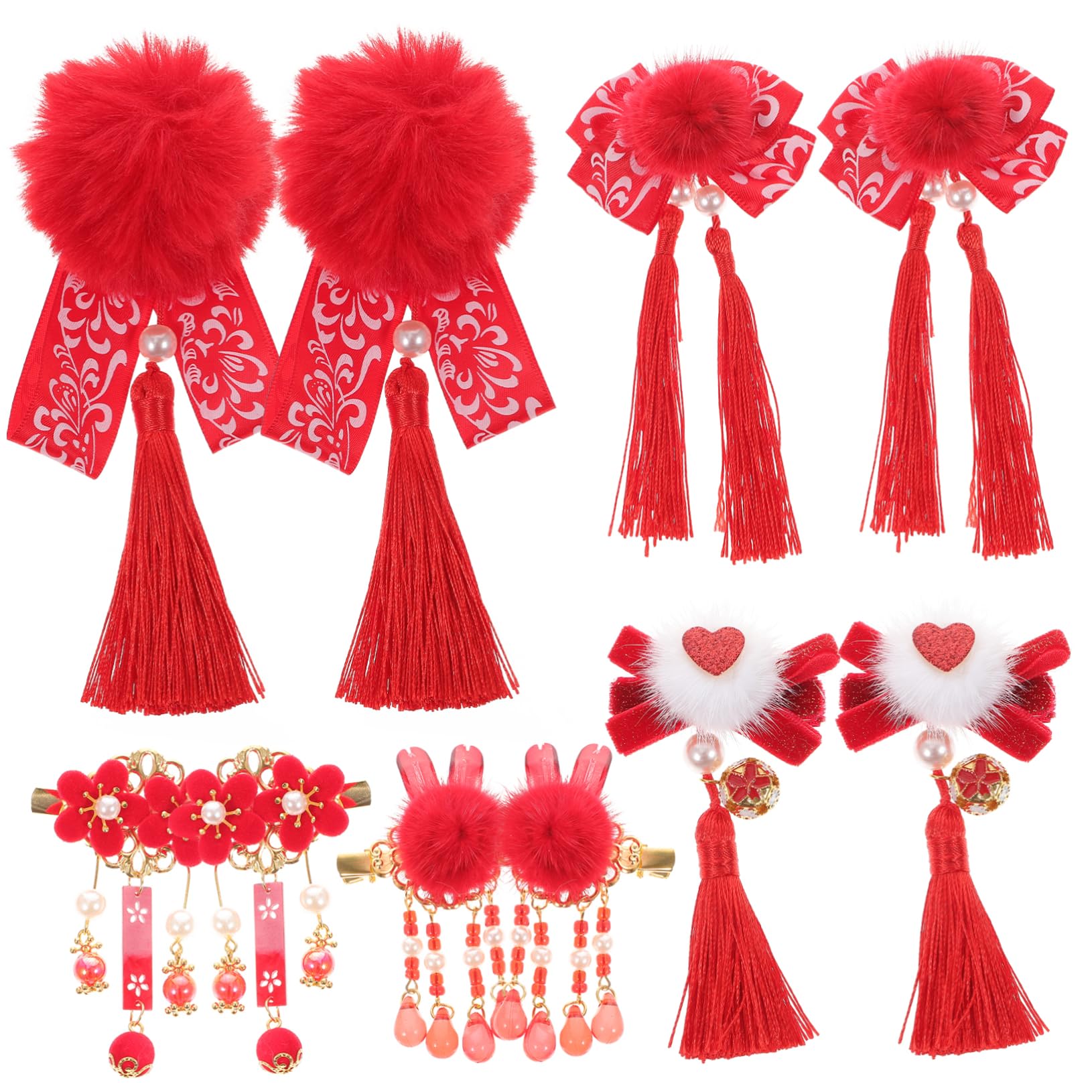 minkissy 5 Pairs Antique Red Hairpin Tassel Hair Accessories Pom Pom Tassels Hair Clips Barrettes Red Furry Balls Bow Hair Clips Girls Tassel Hair Clip Cloth Princess Flower Hair Girl Child