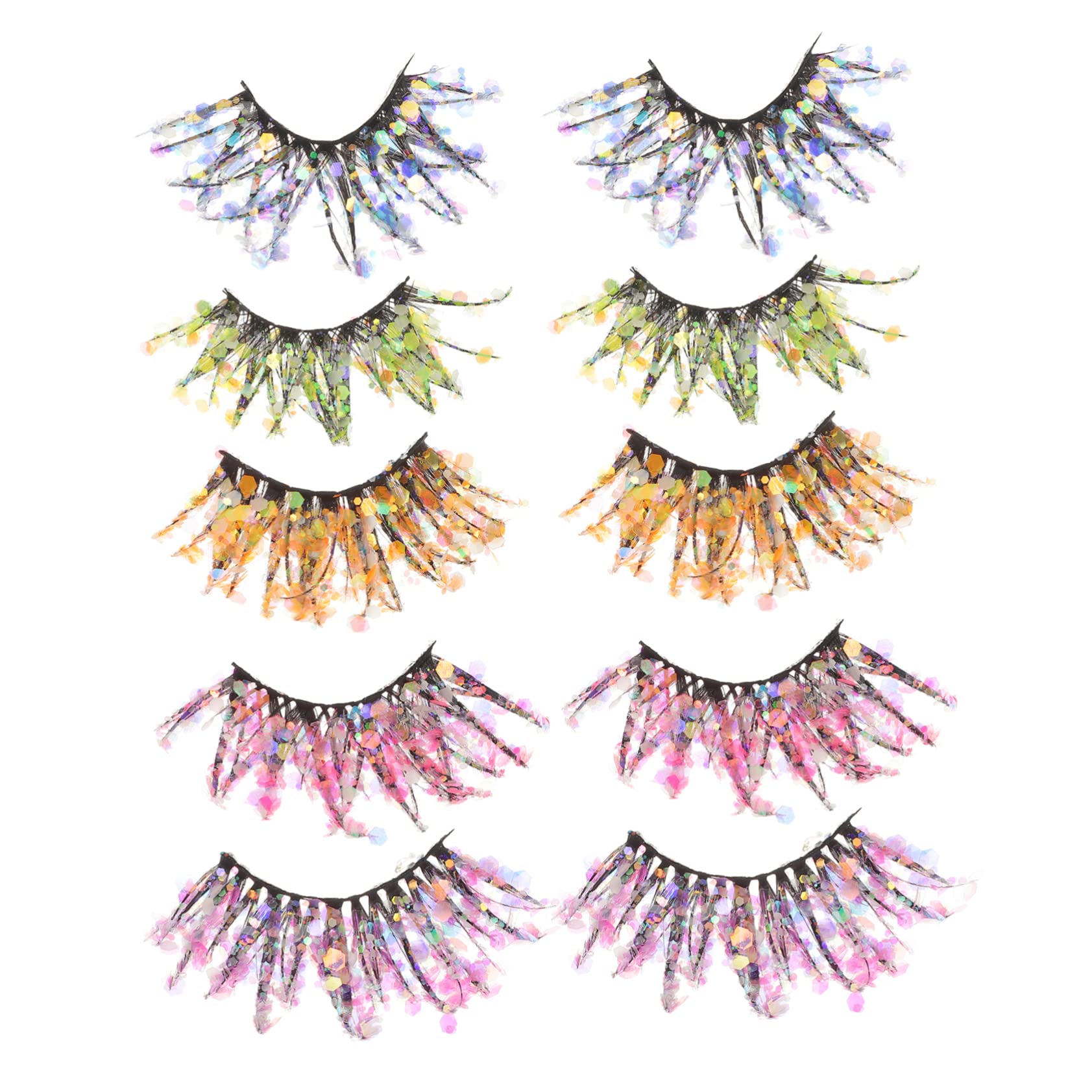 fiber fake eyelashes. -Color: Assorted colorful eyelashes. -Size: About 5.50X3.00X1.00cm/2.16X1.18X0.39in false lash. - You can choose the corresponding lashes according to the type of your clothes, making you look attract attention lashes with glitter. - The overall look looks layered, decorated with a lot of sequins, shining at night under the , charming and beautiful eyelashes with glitter. - These sequins lashes give that glamorous look and bring you the seamless and comfortable feeling of wear 3d false eyelashes. - You can them on Halloween, Christmas, theme parties, cosplay, street shoot, and makeup dress up, bar, and more color lashes. - Exquisite glitter appearance, -friendly, no discomfort when worn for a time, suitable for most women lashes. Goods Description glitter lash extensions These glitter lashes are delicate, which gives you the perfect 3D effect, making your eyes look bigger, brighter and more attractive, making you look naturally gorgeous and beautiful. eyelashes for halloween There are a variety of perfect false eyelashes that can meet your demands, they can be perfect birthday for your female friendsColorful Eyelashes: You can choose the corresponding lashes according to the type of your clothes, making you look attract attention. Fake Eyelash: ?? It will be a perfect for your wife, daughter, mother, niece, friend, your special someone, or just yourself. Colored Glitter Eyelashes: The overall look looks layered, decorated with a lot of sequins, shining at night under the lamp, charming and beautiful. 3d False Eyelashes: Flexible and lightweight, it blends perfectly with eyelids and lashes, giving you a good wearing experience. Halloween False Eyelashes: Exquisite glitter appearance, skin- friendly, no discomfort when worn for a time, suitable for most women.