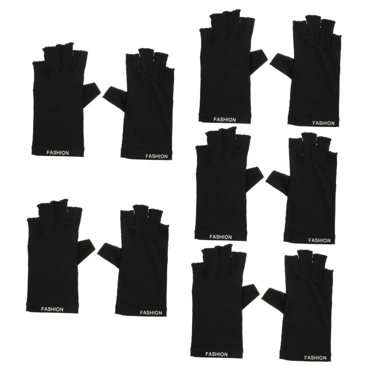 Package Include 5 x pair of gloves Features -Color: Black Manicure Gloves -Material: Chinlon Salon Supply -Size: About 18.30X8.60X0.30cm/7.19X3.38X0 Manicure Tools. -They are made of high grade materials, supple and breathable, and the mitt design allows you to wear it while using the phone Fingerless Manicure Gloves. -They can also be used for outdoor travel, fishing, cycling, hiking and driving, etc Nail Art Gloves. -The manicure gloves are carefully crafted, and the color is not easy to peel off Shield Gloves. -Anti- gloves can be used for hand protection when the baking is working Manicure Protective Accessory. -The glove is designed for protecting the skin of the hand from ultraviolet rays of the nail dryer light Nail Art Protector. Goods Description Manicure Gloves Nail treatments require direct light on the fingers to dry the gels on the nails, but rays can cause damage to the skin, causing it to blacken, dry and age.Salon Supply Use this product can directly isolate harmful light damage to the skin, protect the skin