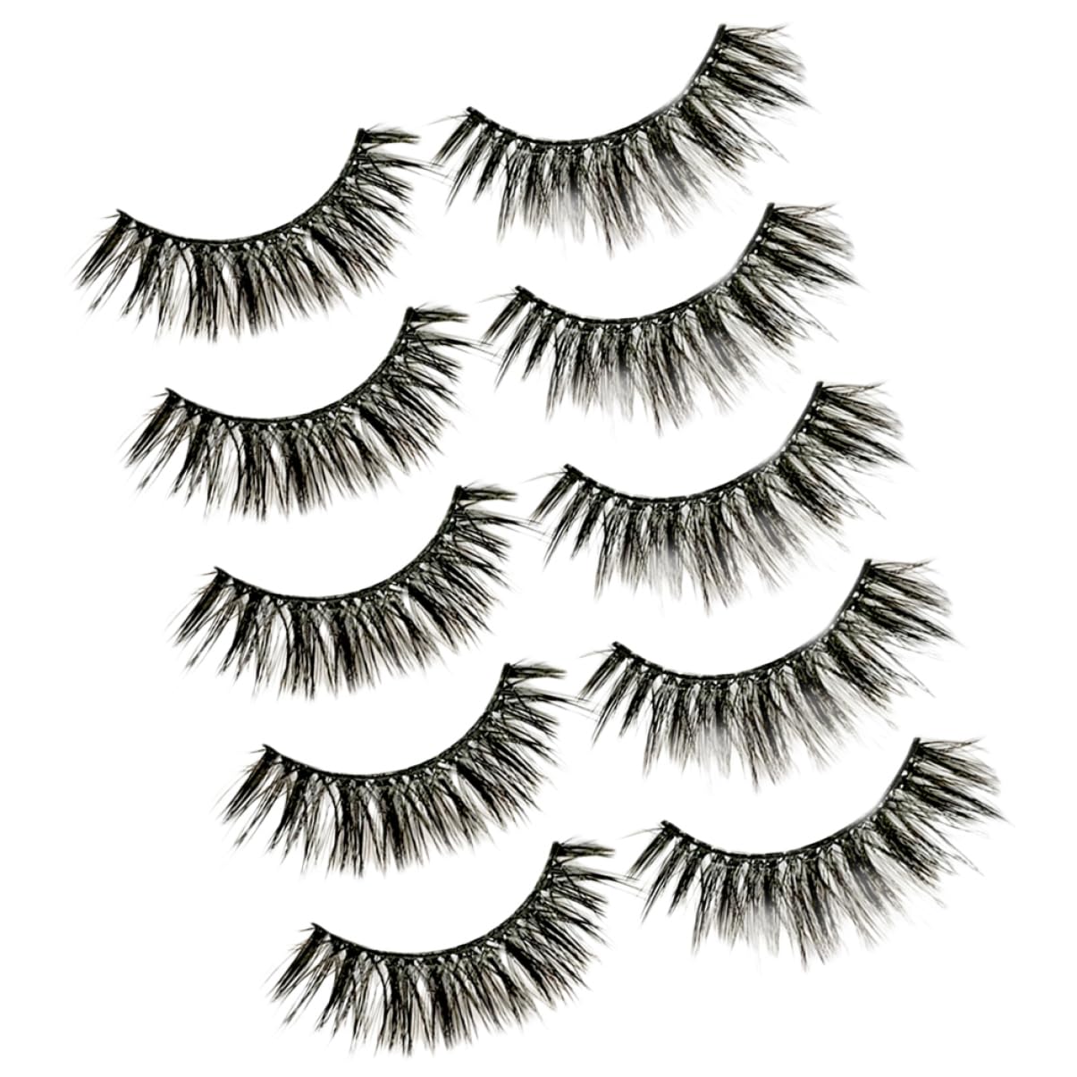 Package List 5 x pairs of Eyelashes Characteristics - Color: Black cross eyelashes. - Warm Tip: Dear buyer, due to lighting effect, monitor's brightness, manual measurement, etc., there could be some slight differences in the color and size between the photo and the actual item fake eyelash. - Material: