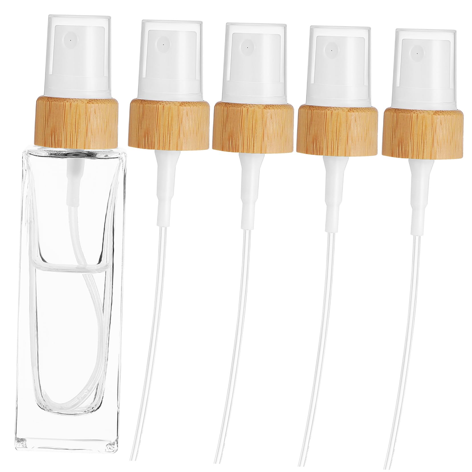 minkissy 5pcs Spray Bottle Nozzles Fine Mist Spray Tops for Cosmetics Essential Oil Bamboo Trim Leakproof Seal