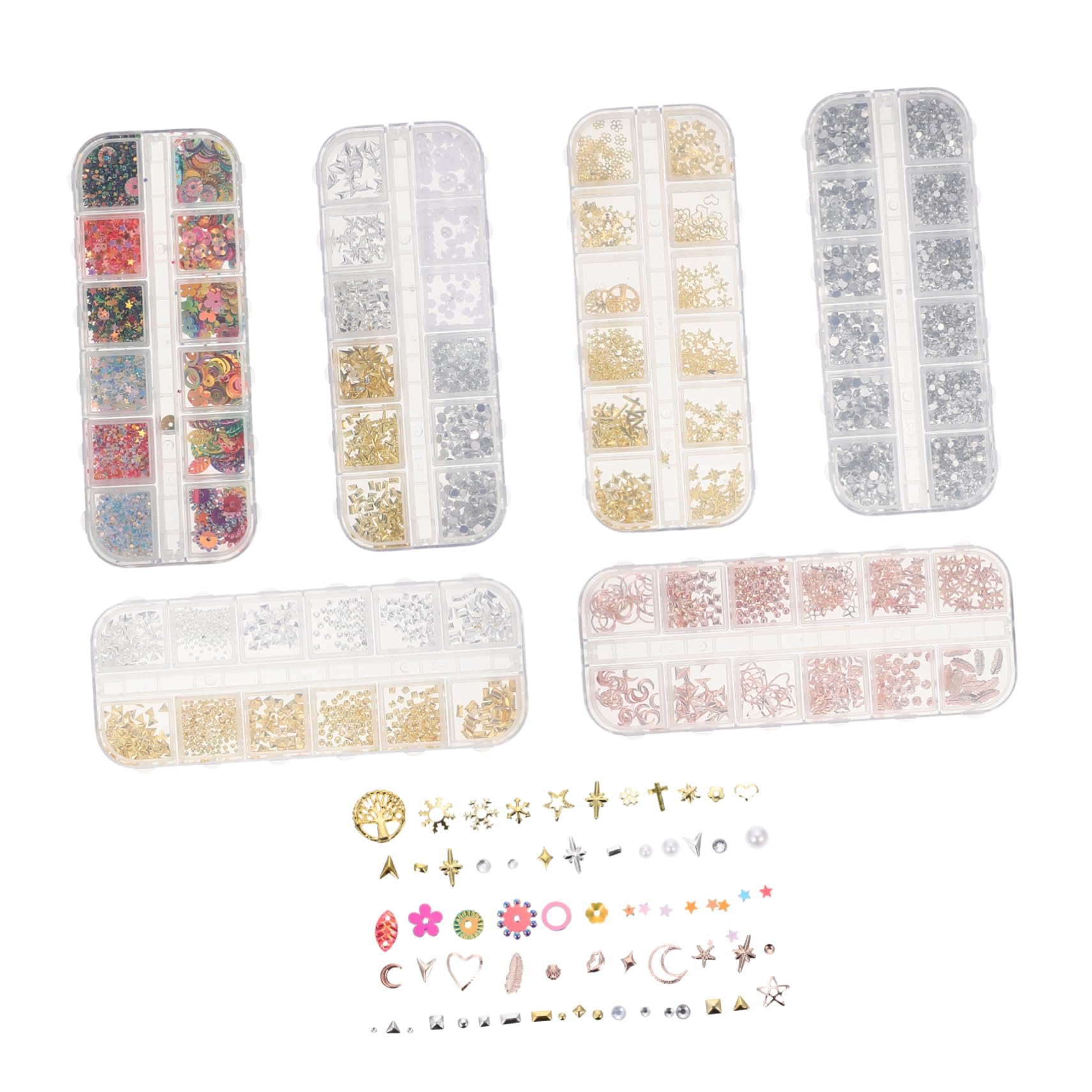 minkissy 6 Boxes Nail Art Accessories Nail Accessories Girls' Accessories Nail Decorations for Nail Art Nail Art Glitter Sequins Metal Nail Charm Studs DIY Nail Ornaments Mini Nail Charms