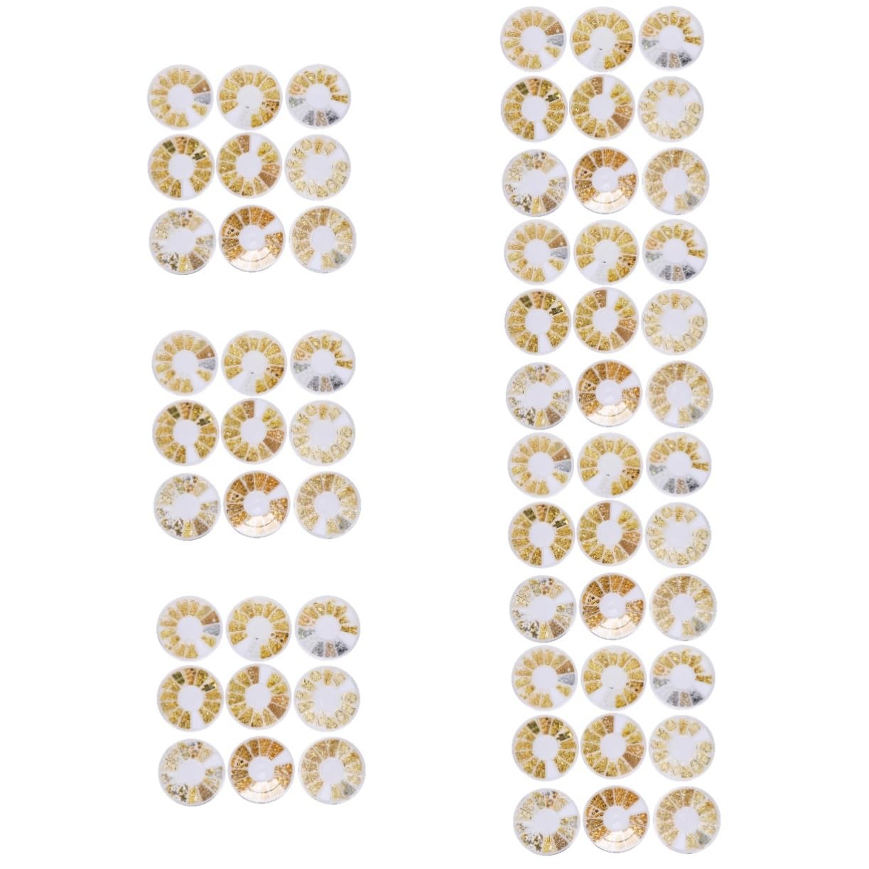 Package List 63 Boxes x Nail Decorations Characteristics - Material: Zinc Alloy, Plastic Nail Art Supplies. - Color: Gold, silver, white DIY Nail Accessories. - Size: 6.80X6.80X1.80cm/2.67X2.67X0.71inch Nail Art Studs. - DIY by yourself, it allow you to enjoy the fun of nail art Manicure DIY Decor. - Different design for satisfying your different needs, enough for your daily spare and replacement Nail Art Charm. - Can be used to make special embellishment for your bag, body, phone, dress, craft, shoes, etc Nail Accessory. - Made of zinc alloy and plastic material, no harm, no fading, safe and durable for use Nail Studs. - These nail studs will makes your nails look more elegance, shiny, chic, charming and attractive Manicures Decoration. Goods Information Manicures Accessories The package include 9 boxes of nail studs, provide more choice for DIY your nail art, you can choose you favorite one according to your actual needs, bring more fun and joy.Manicure Decor Suitable for DIY on most surfaces, like handmade crafts, cellphones, laptops, glasses, nails, body, etcNail art studs: these nail studs will makes your nails look more elegance, shiny, chic, charming and attractive. Manicures accessories: it is fun to DIY nail art with your family or friends when family gathering, enjoy your own unique nails and good time. Manicure decor: quick to apply, just a few seconds, you can get the fine nail art design, suitable for both beginners or professional nail salons. Nail studs: can be used to make special embellishment for your bag, body, phone, dress, craft, shoes, etc. Rivet nail decor: dazzling nail art accessories, really gives you the beauty and sparkle you want to your decoration.