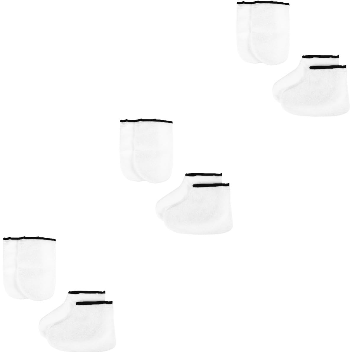 Package Contents: 3 pairs of hand warmers and 3 pairs of socks. Features: - Color: White boots, white ankle boots, thermal warm moisturizing gel manicure spa manicure, moisturizing gel liners - Hand warmer size: approximately 25 x 16 cm. - Material: Thick polyester foot cover. - Foot size: approximately 25 x 20 cm. - Suitable for professional paraffin wax treatments in a home spa. - Keep the wax warm on your hands and feet after the paraffin soak to help maximize moisture absorption for a good effect. - Ideal for use with a paraffin wax bath heater. Helps maximize moisture penetration for a good effect. - Professional paraffin wax heater protection kit, including 1 pair of hand warmers and 1 pair of foot socks. - Brush hands with wax, wrap with disposable hand warmers, then apply the wax. Remove the gloves and the thin film 10 to 15 minutes later, then remove the paraffin wax moisturizers. : These pairs of paraffin wax bath gloves are made with high-quality material. They are easy to use. The gloves are practical and easy to apply yourself. The insulated gloves keep the wax warm on your feet and hands after the paraffin soak to help maximize moisture absorption for a good effect. Instructions: Keep Clean