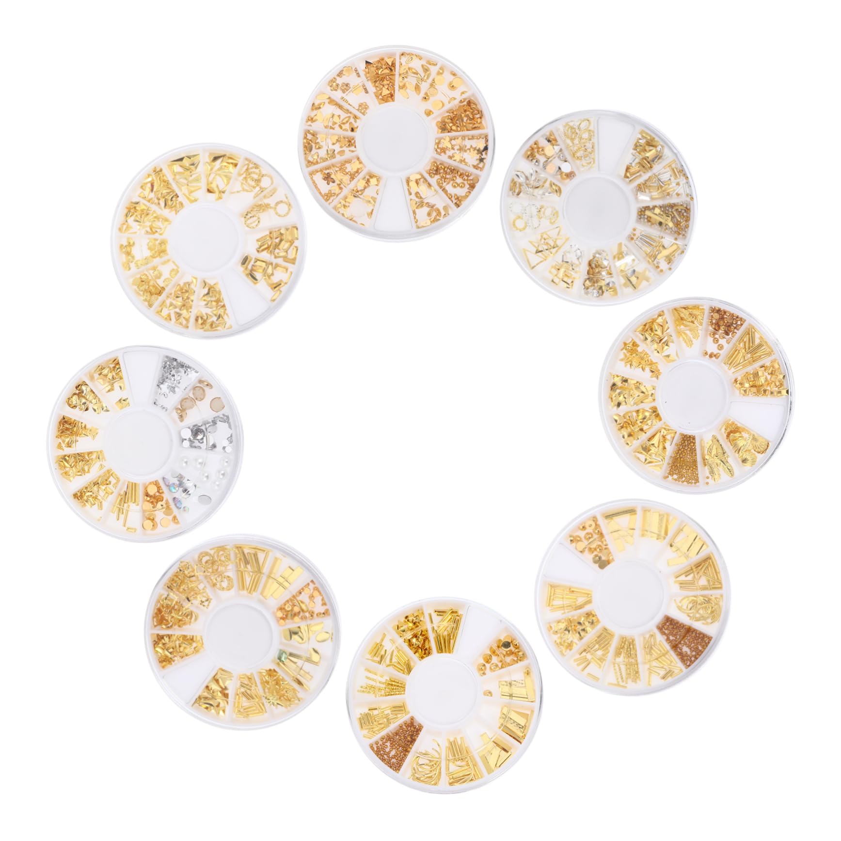Package List 8 Boxes x Nail Decorations (Assorted Style) Features - Size: 6.00X6.00X1.00 cm/ 2.36X2.36X0.39 inch metal nail studs. - Material: Alloy + Plastic Nail Accessory. - Color: Golden nail decorations. - Fabulous effect of the nail decoration will make your nail art more attractive and elegant Rivet Nail Art Decor. - Beautiful and shinning color will never out of style,meet with all the fashion Rivet Nail Decor. - Made of , no harm, not easy to break, for term use nail accessories. - It is fun to DIY nail art with your family or friends when family gathering, enjoy your own unique nails and good time Nail Art Decor. - Quick to apply, just a few seconds, you can get the fine nail art design, suitable for both beginners or professional nail salons jewelry accessories. Goods Description metal trim These nail decal studs with creative shapes, can be used to design your own nail art, highlight, etc.nail Exquisite and beautiful, designed with chic and beautiful colors, look great on your nail, make you look more beautiful and elegant.nail tech accessories Great combination for you to DIY nail decorations DIRECTIONS keep clean SAFETY WARNING 1 See moreDIY accessories for nail-- dazzling nail art accessories, really gives you the beauty and sparkle you want to your decoration. Manicures decoration-- DIY nail art at home without going to a beauty salon, very convenient for use. Nail art supplies-- they are differ in shape, can be used for home decoration, body art, nail art, crafting. Nail confetti glitter-- these nail studs will makes your nails look more elegance, shiny, chic, charming and attractive. Moon nail studs-- DIY nail art at home without going to a , very convenient for use.