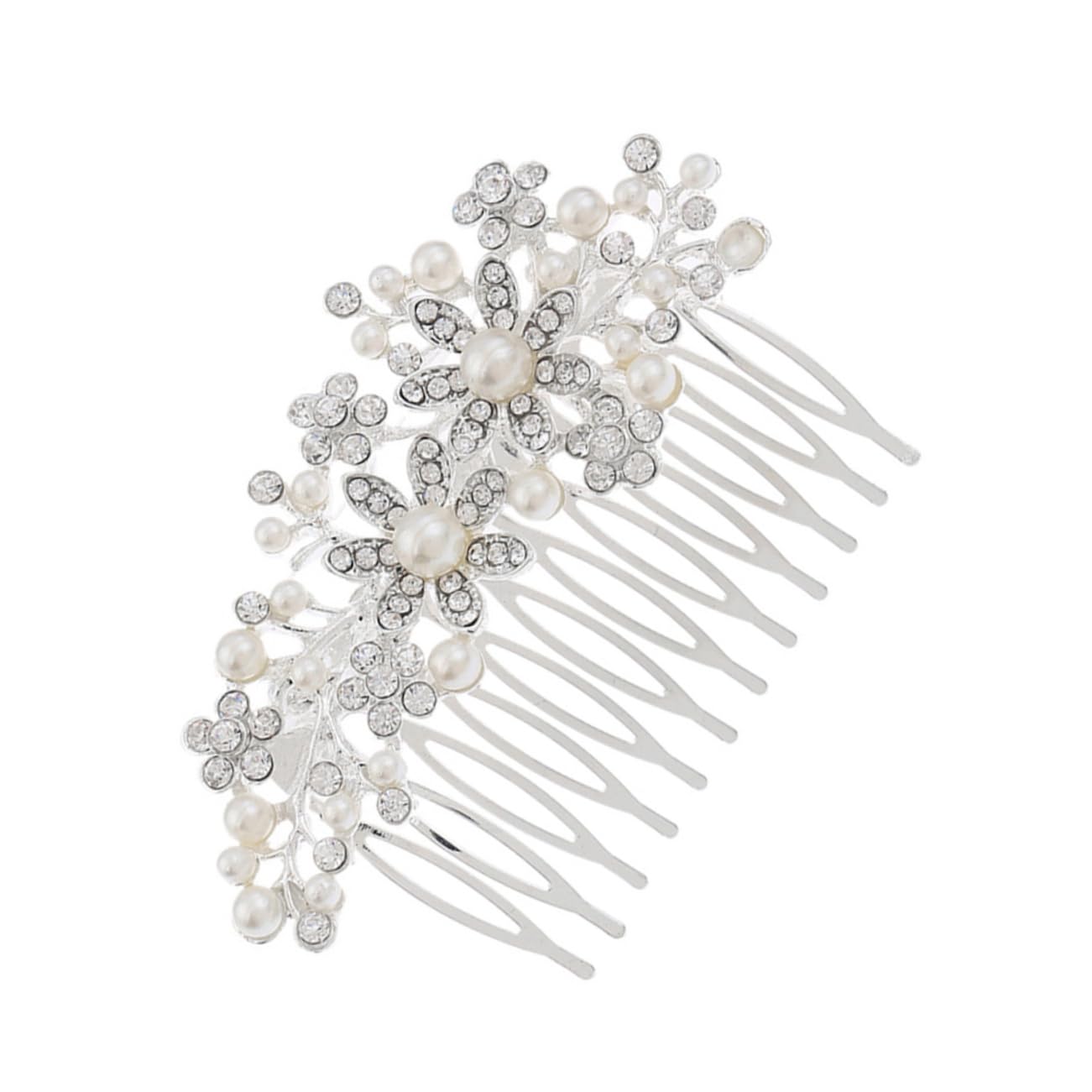 Package List 1 * Women Girls Flower Shaped Rhinestone Pearl Decorated Hair Comb Hair Accessories (Silver) Characteristics - Size: about 8.5 x 5x2cm Women hair clip. - Color: mainly silver Women hair comb. - Material: hard alloy, rhinestone, pearl. - Fantastic hair accessories for weddings, proms, parties or other special occasions Women hair accessories. - It makes your look noble and add your charm Flower hair comb. - The hair comb is easy to get in the hair and will assure a snug fit on various hair styles Hair comb women. - and Women Rhinestone Pearl Decorated Hair Comb. - Works great with any hair styles for women of all ages. - Crystal rhinestone and pearl decorated flower design hair comb, very delicate and charming. Goods Description women's hair clips The item is a fashion and delicate women's girls hair comb, which is mainly made of durable hard alloy material, and features crystal rhinestone and pearl decorated flower design to make it more unique and charming.Hair comb women Besides, the hair comb clip is easy to get in the hair and will assure a snug fit on various hair styles.Women hair comb Therefore, it will be a great for women who are into fashion trend