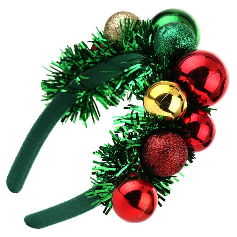 Christmas Ball Hairband Colorful Ball Headpieces with Green Tinsel Decor Xmas Party Headdress for Women Girls