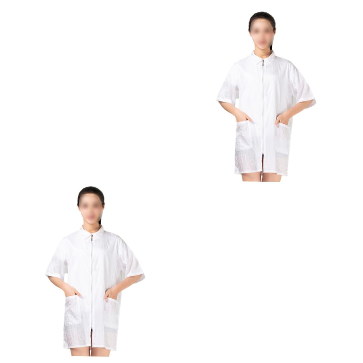 Package List 2 pcs x 1 z clothes Characteristics - Material: Nylon salon Jacket Vest Size XL: 83cm(length); 50cm(shoulder width); 136cm(bust); 31cm(short sleeve); 175-185cm(recommended height); 85-100kg(recommended weight) salon smock - Size: About coats for men Size L: 80cm(length); 48cm(shoulder width); 130cm(bust); 30 mens tank top. - Color: White Cutting Hair Cloth Size M: 77cm(length); 47cm(shoulder width); 122cm(bust); 30cm(short sleeve); 150-165cm(recommended height); 50-70kg(recommended weight) Salon Cutting Cape - It is soft, , you can feel very comfortable Clothes Hair Dye. - Made of , durable for long time use barber cape for men. mens mens vest - Pocket design is very practical, you can store your things easily Haircut Apron. - Turn-down collar design, your wear will be fashionabe and simple short sleeve smock. - You can clean it easily Nylon Haircuting Cape. Goods Description chef coat the simple design is very practical.mens hair dye suitable for hair dye store, restaurant and so on.nylon jackets for men This is a hair dye clothes, made of nylon material.Unisex Hair Cutting Cape they are durable and lightweight.nursing jacket for women or men.Barber Work Apron zipper design is very practical, you can wear it easily