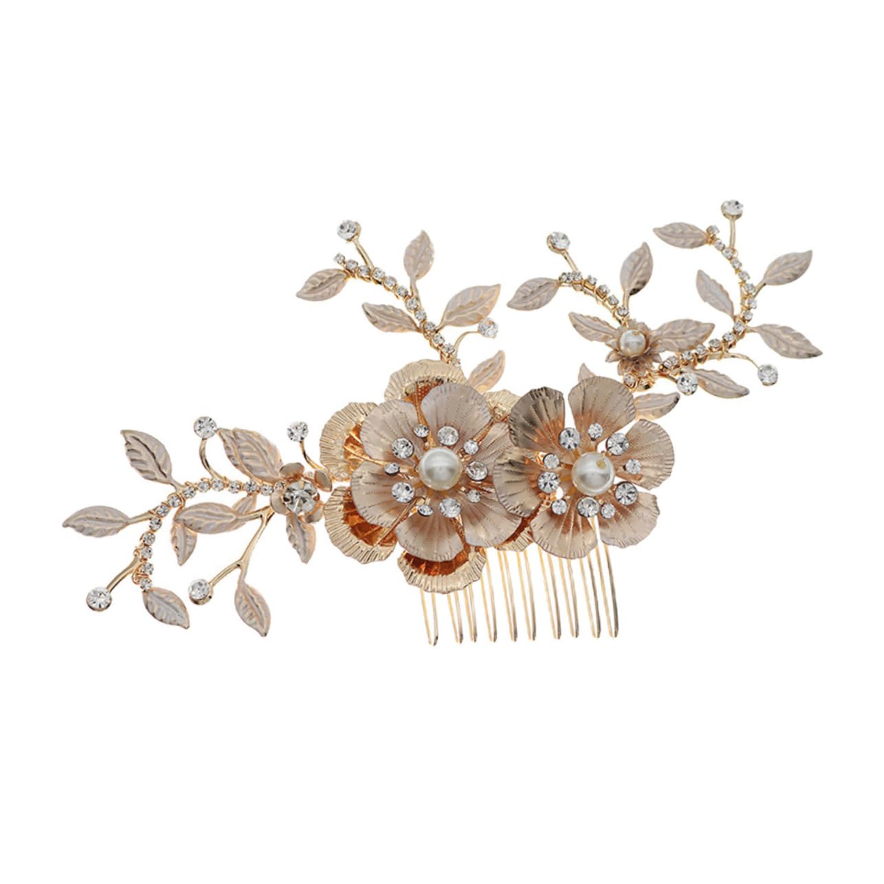 Package List 1 x hair comb Characteristics -Material: Alloy Wedding Hair Comb. -Color: Golden Comb Clips. -Size: 16.00X9.50X1.00cm/6.29X3.73X0.39inch Retro Rhinestone Headwear. - Make you look charming and eye-catching on wedding or party Rhinestone Hair Comb. - With diamond look and fine workmanship for practicality and aesthetics Women Hair Clip. - This rhinestone flower shape hair comb is suitable for women, girls, brides and bridesmaid Bride Hair Accessories. - Easy to put on, comfortable to wear and won't hook your hair Bride Hair Comb. - Retro style, can match various dresses and occasions Hair Side. Goods Description women's hair clips This hair comb is made of good material, and it is durable and safe.pearl wedding hair accessories You will look decent and unique by wearing this hair decor.barrettes for women Great hair accessory for daily life, travel, wedding, work wearing etc.gold hair barrettes Retro style with exquisite detail makes it attractive.womens barrettes for hair Perfect for woman, girl etc