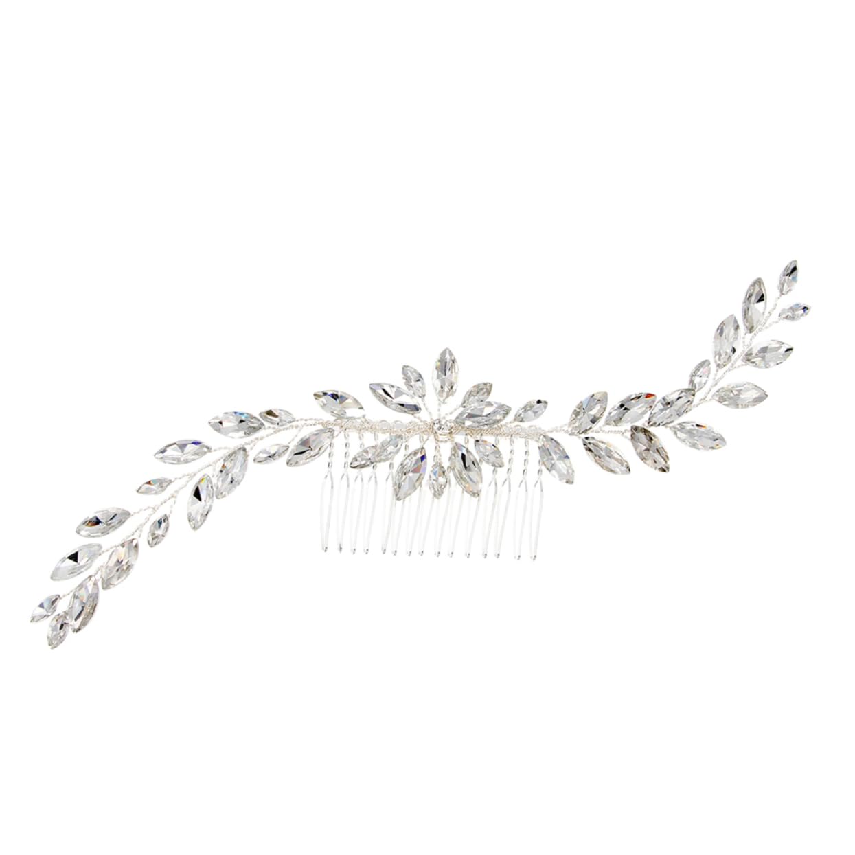 Package List 1 x Bridal Hair Comb Characteristics - Size: about 21x5x1cm bridal hair pieces. - Material: Alloy Women Comb Jewelry. - Color: Silver Crystal hair comb. - Designed for versatility, this wedding hair accessory can be adorned in an updo or can be worn to delicately frame a half up and down hairstyle wedding hair accessories. - This wedding hairpiece looks gorgeous in almost any wedding day hair style Jewelry hair Comb. - Handmade hair combs accessories for brides and bridesmaids, available in beaufiful color wedding hair Tiara. - The wedding hair accessories are suitable for any wedding party theme. Special for wedding, party, prom, party, engagement, anniversary or other special occasions. - Delicate crystal brings you a unique sense of beauty, leaving a deep impression decorative hair combs. Goods Information Crystal hair comb This exquisite designed hair comb is a alternative for headpiece such as crown, tiara or headband.bride hair clip This bridal hair comb is made of alloy and beautiful crystal with of plating color.crystal headpiece bride, bridesmaid, flower girls or wear it to a party