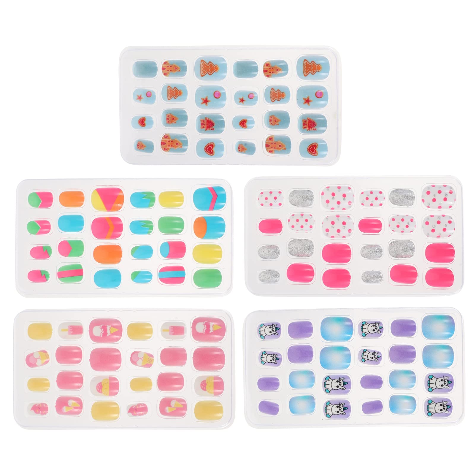 minkissy Fake Nails 5 Boxes Children's s 3d Stickers for Kids Full Cover Child Nail Kids Fake Nail Trendy Stickers Cartoon s Sparkle Stickers Girl Stickers Halloween Nail Set Abs