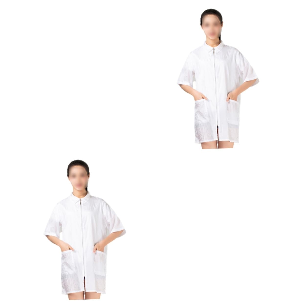 Package List 2 pcs x 1 z clothes Characteristics - Color: White hair dye clothes - Size: About Man Hair Dye Clothes Size XL: 83cm(length); 50cm(shoulder width); 136cm(bust); 31cm(short sleeve); 175-185cm(recommended height); 85-100kg(recommended weight) mens jacket Size M: 77cm(length); 47cm(shoulder width); 122cm(bust); 30cm(short sleeve); 150-165cm(recommended height); 50-70kg(recommended weight) hair stylist smock jacket Size L: 80cm(length); 48cm(shoulder width); 130cm(bust); 30 hairdresser work suit. - Material: Nylon jackets for men men - Made of , durable for long time use jackets. - Pocket design is very practical, you can store your things easily Nylon Salon Cape. - Turn-down collar design, your wear will be fashionabe and simple Hair Salon Gown. - It is soft, , you can feel very comfortable tank tops for men. hair styling cloth - You can clean it easily Salon Client Gowns. Goods Information Uniform the simple design is very practical.grooming smocks suitable for hair dye store, restaurant and so on.crop jacket for women or men.salon coats zipper design is very practical, you can wear it easily.hair cover This is a hair dye clothes, made of nylon material.short sleeve smock they are durable and lightweight