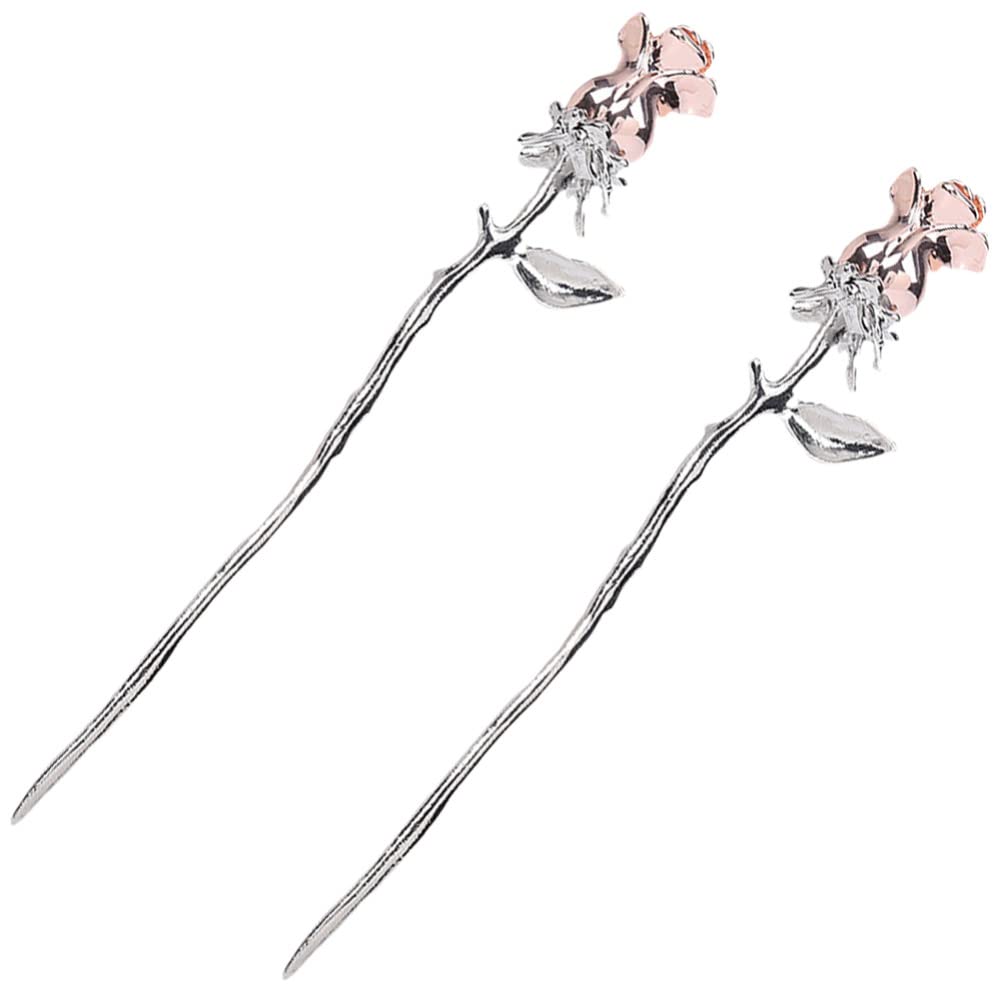 minkissy Metal Chopsticks Metal Chopsticks Rose Metal Hairpin Hanfu Headdress Sticks Bun Hair Pin Chignon Pin Women Girls Hair Accessories Hair Accessories Hair Accessories