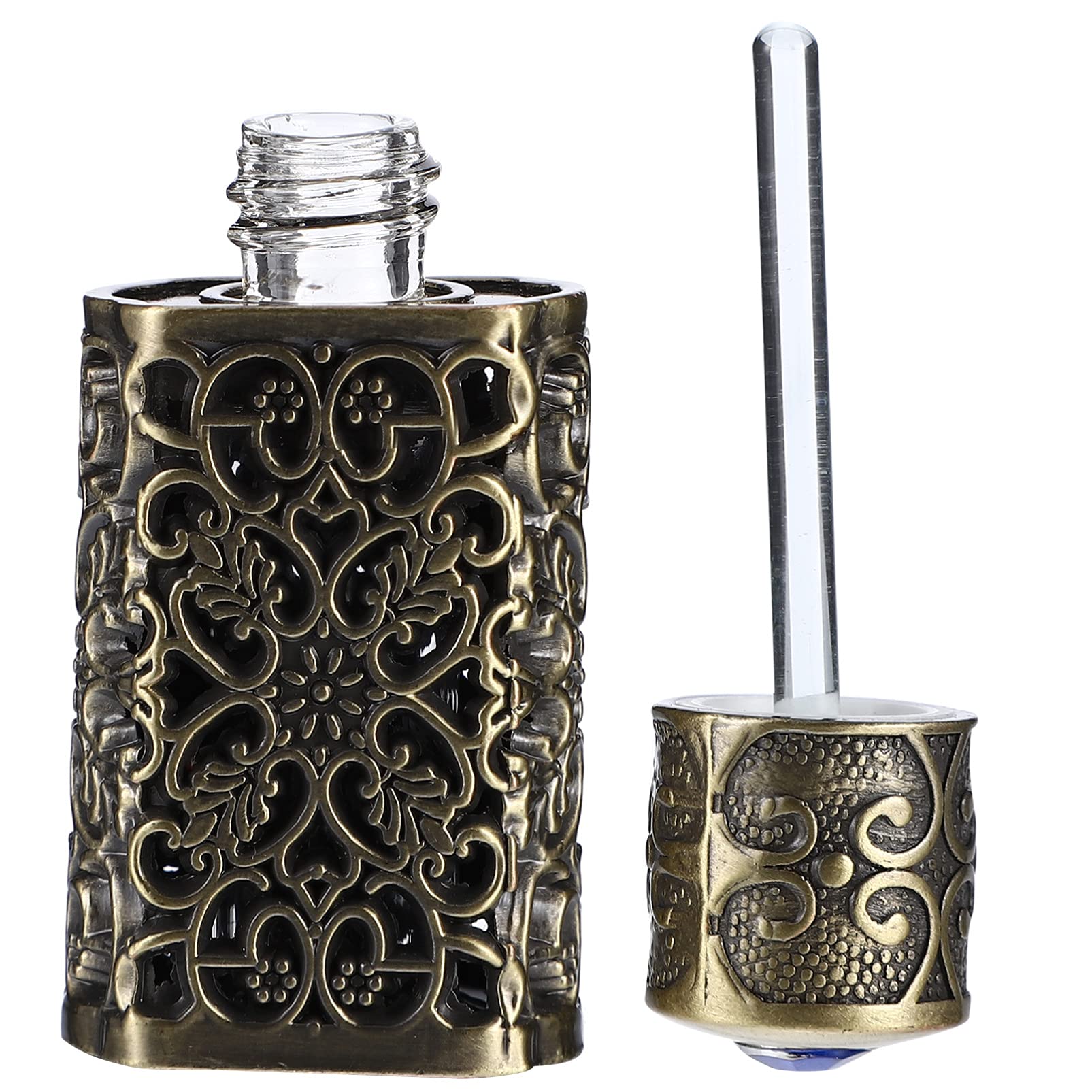 Description This bottle is small and easy to carry. Made of good- quality material which is anti- leak and wear- resistant. The bottles are and can be used many times. They are usually used for storing essential oils, travel perfume, as well as dispensers for dispensing items. Features - Material: Glass, metal - Size: 2. 50X1. 50X5. 30cm/ 0. 98X0. 59X2. 08in. - Capacity: 3ml. - Wide use. Great for scientific experiments and all types of crafts, including soaps and stains. - A great way to dispense essential oil and other aromatherapy liquids, provides endless possibilities. - The convenient size makes it perfect for travel in bags as the leak- proof covers. - Leak- proof, mixing your oils without creating a big mess. Saves money and time by making every drop count. - Antique shape design, it looks delicate to store essential oil, perfume and other liquids for daily use. - Color: Green patina. - Size: 2. 5x1. 5cm. Package Including 1 x perfume bottles