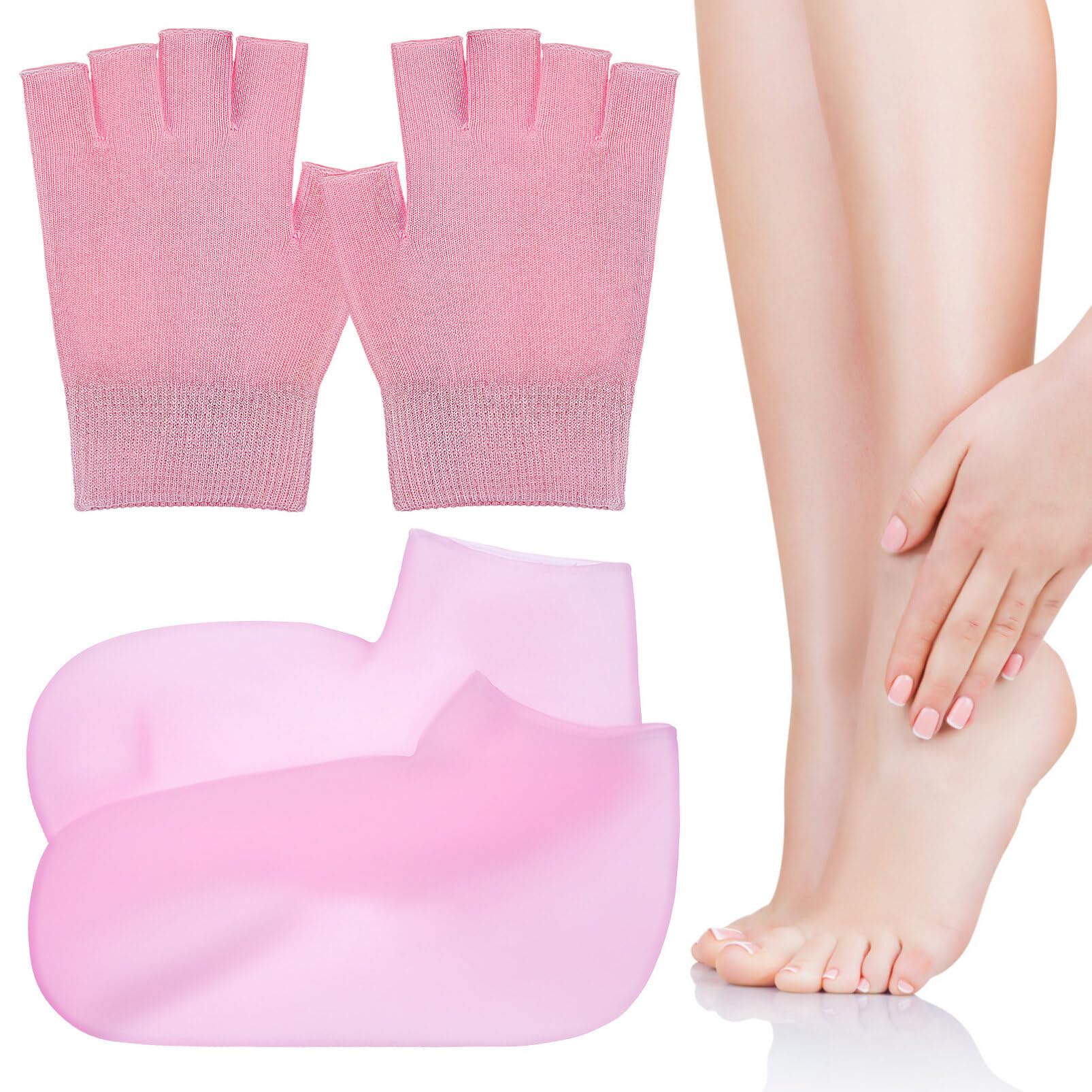 Durable performance: Resilient and reusable, these gloves and socks withstand wear and tear for long-lasting nourishment. Stylish look: Available in charming hues, these gloves and socks boast an elegant design thats for women. Convenient design: With fingerless gloves, theres no need to constantly remove them, making usage more convenient. Wear with ease: The fingerless moisturizing gel gloves and socks provide a comfortable fit and simple removal. Nourishing hands: Utilize the moisturizing gloves alongside hand cream or other skincare products for effectively hydrating parched skin.
