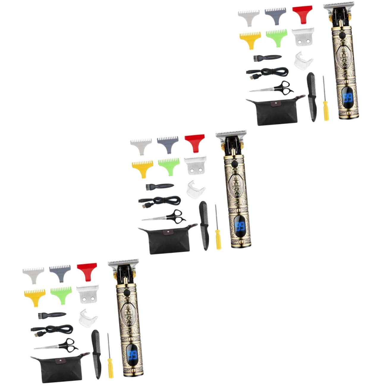 Package Include 3 x hair clipping 12 x combs 3 x spare blade 3 cover 3 x scissors 3 x comb 3 x screwdriver 3 x storage bag 3 x cleaning brush 3 x USB charging cable 3 x protective cover 3 x manual Characteristics -Size:15.30X4.10X4.10cm/6.01X1.61X1 beard trimmer. Battery: 3 maquina de cortar . -Material: Stainless steel hair trimmer Charging time: 2 hours clippers for men professional Power: 10W mens hair clippers -Color:As Shown clippers - The narrow design of the trimmer blade makes it easy to trim hair, beard and sideburns. Made especially for gentlemen hair clippers cordless. - It is easy to carry and can be placed anywhere in the suitcase, meeting the needs of travel and business trips hair trimmer for men. - Easy to hold, making personal haircuts easier, without worrying about accidentally touching the to ruin the haircut hair clippers. - Excellent craft, carefully down to every detail to give it a chic and beautiful look cordless clippers. Working time 180 minutes clippers for hair cutting - USB rechargeable, you can charge it with laptop, car charger, wall charger, and etc mens trimmer. Goods Information beard trimmer for men professional Are you looking for a professional, yet reasonable hair trimmer? Are you in search of a sturdy, trustworthy tool that can do multiple jobs at once? If yes, look no further! Our professional hair trimmer must meet your needs.professional hair trimmer It is one of for you