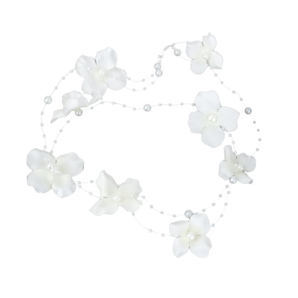 Package List 1 * Wedding Bridal Hair Accessories Pearl Fabric Flower Hair Clip Headband (White) Characteristics - Material: Fabric, Faux Pearls Bridal Hair Accessory. - Flower size: Approx. 4cm flower hair string clip. - Elegant faux pearl and flower design, very stylish and fashion Pearl Fabric Headband. - Beautiful fabric flower hair string clip Pearl Headband String. - daily wear and some special occasion such as party, dancing ball and ceremony Flower Hair Clip. - Total length : Approx. 120cm. - Color: White. - Easy to put on and creates an instant stunning new hair style. Goods Description Flower Hair Clip The item is a delicate, elegant and beautiful flower hair clip, and features some sparkling crystal rhinestones and faux pearl decor flower design to make it more outstanding and attractive.flower hair string clip It is a very charming hair accessory for weddings, dances, performances, or other special occasions
