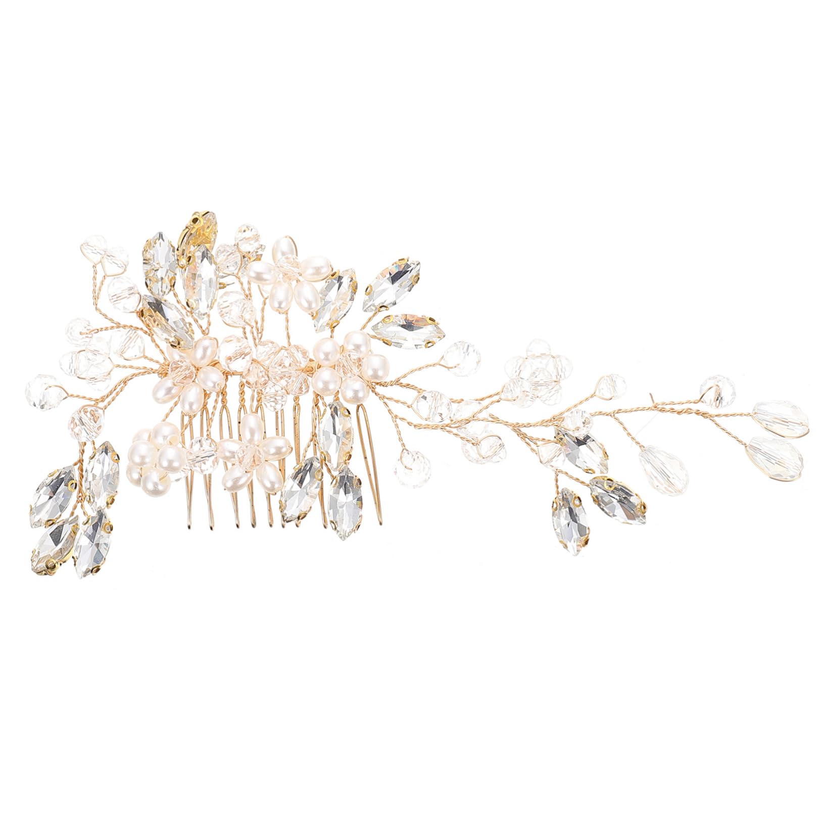 Package Include 1 x hair comb headpiece Characteristics -Size:15.50X7.30X1.00cm 6.09X2.87X0 bride hair comb. -Color:Golden bride accessories -Material:Alloy, crystal wedding headpiece -Elegant and unique, can match with your wedding dress perfectly, comfortable to wear and fashionable as well flower girl headpieces for wedding. -It can be as bridal wedding headdress to become more beautiful and attractive in the wedding, you will be the hit bridal hair accessories for wedding. -It is durable and portable for you. If you want to find a great headpiece for wedding, it will be one of bridal headdress. -It is a wonderful and delicate for bride or women in the weddings, birthdays, festivals, anniversary celebrations, and so on hair pieces for wedding. -With gorgeous and luxurious design, suitable for every women, not matter you have curly hair or straight hair bride headpieces for wedding. Goods Description girl hair clips Made of crystal and alloy material and having the delicate detail decors, for bridal hairstyle decoration.flower girl hair accessory Unique and crystal decorated design is chic, makes you more elegant and charming.rhinestone floral This is an elegant hair comb headpieceWedding bridal: it can be as bridal wedding headdress to become more beautiful and attractive in the wedding, you will be the hit. Flower girl hair accessory: with gorgeous and luxurious design, suitable for every women, not matter you have curly hair or straight hair. Prom hair accessories: so gorgeous and charming, for most styles and to show a completely distinctive appearance in public. Bridal hair accessories for wedding: it is an excellent decorative hair accessory for the bride, mother of the bride, bridesmaid or flower girl. Bridal headdress: hair piece for wedding will modify and decorate your hair better, also keep color for long and not fade.
