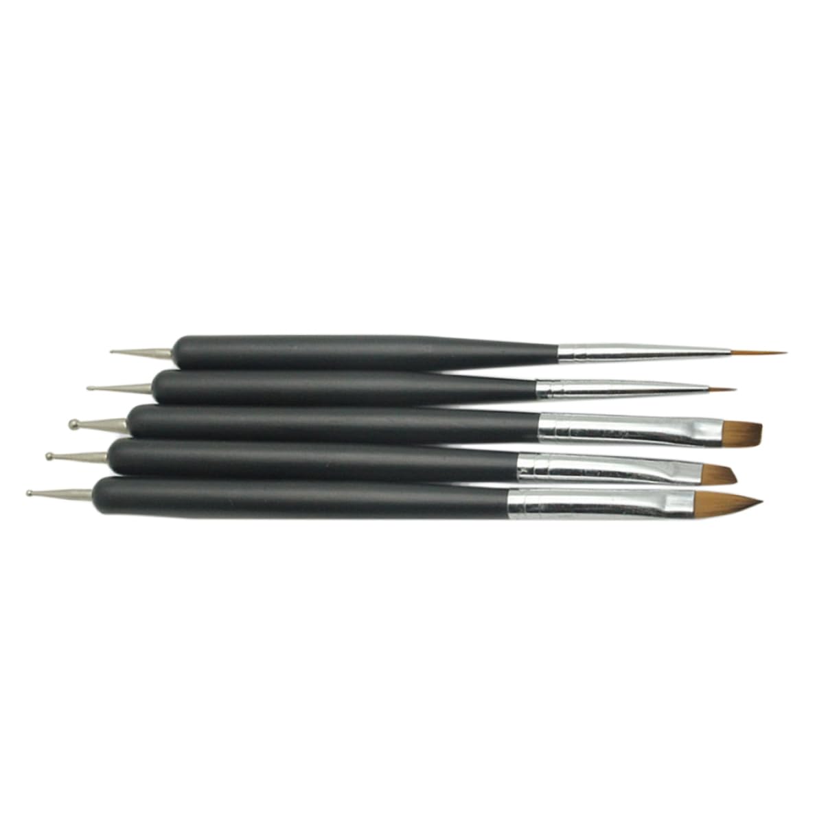 Package Include 5 x Nail Art Pens Characteristics - Material: Stainless steel and nylon hair calligraphy nail art. - Color: Black manicure tools professional. - Size: Approx. 15.7 x 0.4 x 0.4cm Nail Art Equipment. - Made of materails for safe and durable use nail art dotting pen tool. - It will not fall hair easily, and handle is easy to grip and use manicure. - One end with ball styluses and another durable nylon brush tips, this set can meet your needs of painting or dotting manicure pen. - Compact size is easy to storage and carry nail art pen designs. - for fine nail art work. Suitable for professional use and personal use nail art tools manicure dotting tools. Goods Description dot painting tools Now you are able to exert and combine your creativeness with the creative nail art pen and brush.nail design tools nail wax pen Nail art design tools can give you what's needed to create beautiful nail designs for the professional look you are searching for.nail marker pen It can be used on natural nails, false nails, acrylic nails