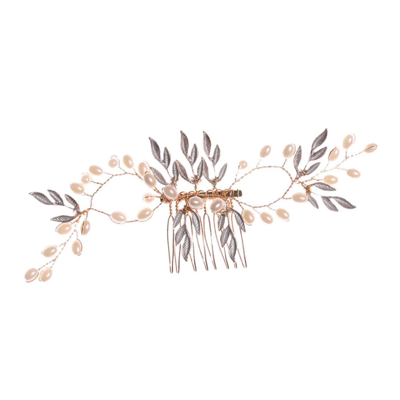Package Include 1 x bridal hair comb Characteristics -Size:16.00X6.00X1.00cm/6.29X2.36X0 pearl hair accessories. -Material:Alloy, pearl bridal hair accessories for wedding -Color:As Shown bride hair clip - Our hair comb can be applied for many occasions, you can wear it in wedding day hair accessories. - Adorned with alloy leaf and pearls, you will get a lot of compliments if you wear it bridal hair clip. - Comfortable for use, don't feel pain when you use the hair comb for long time accessories for women - Create beautiful hairstyles easily and quickly, easy to match different dress and makeup leaf hair comb. - Beautiful hair decor, this hair comb is designed in delicate and stylish style to show your elegance wedding hair clip. Goods Information hair accessories This delicate hair comb is suitable for decorating different hairstyles, easily meet your needs, suitable for formal occasion as you need.hair combs for wedding It is not easy to break or deform, long serving life, bring you a comfortable feeling while touching the surface