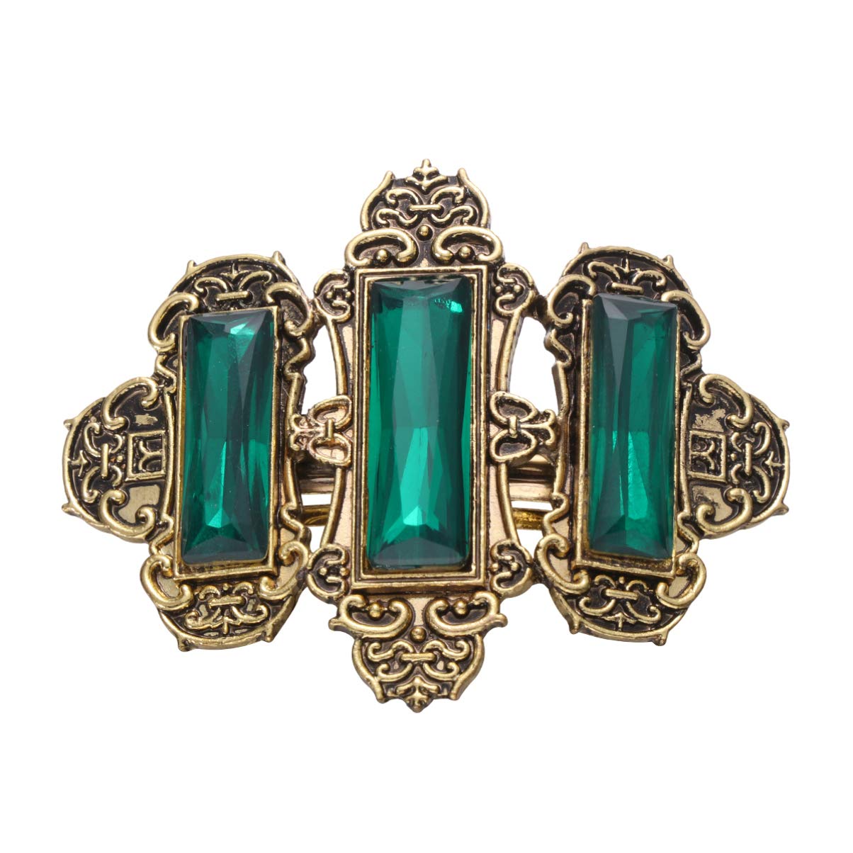 Minkissy Retro Hair Clip Metal Rhinestone Hairpin Celtic Hair Clips Viking Hair Accessories for Women Girls (Golden and Green)
