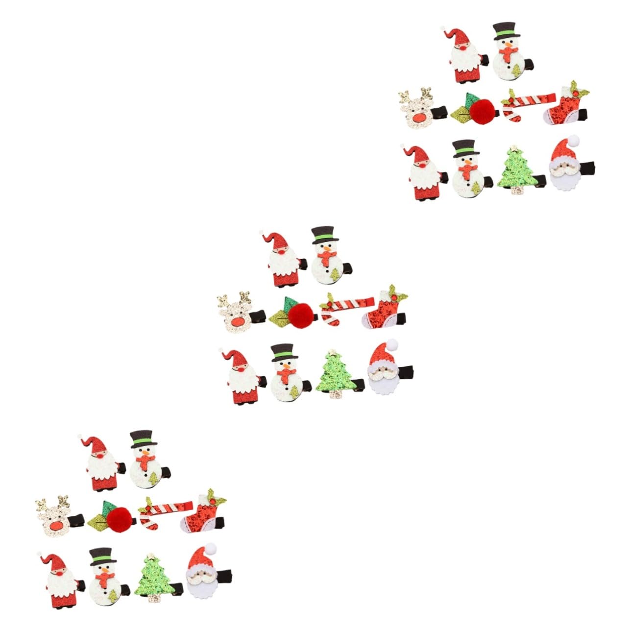 Package List 48 x hairpins Characteristics - Size: About 6.00X5.00X0.50cm/2.36X1.97X0.20inch xmas snowflake barrettes. - Color: Assorted Antlers hair clips. - Material: Iron, cloth santa claus elk hat hairpins. - You can share it with family, friends, colleagues, and classmates, create more joy and fun on Christmas girl hair clips set. - These Xmas hair clips adopts the elements of Christmas, perfectly in line with the theme of Christmas Hair Barrettes for Xmas. - Designed with different styles and designs to match various outfits and make your looks more lovely Hair Clips for Christmas. - Adorable Christmas style design with bright colors will attract ' attention, and make them love to wear it christmas hairpins. - material, which is durable and particularly safe for to wear hair clips for girls. Goods Description santa hat Christmas hair accessories for and adults, you can also clip them to Christmas tree to make unique ornaments.party hairpin Compact size, put in pocket for easy storage, very convenient to carry, you can dress up yourself or your at anytime and anywhere DIRECTIONS keep clean