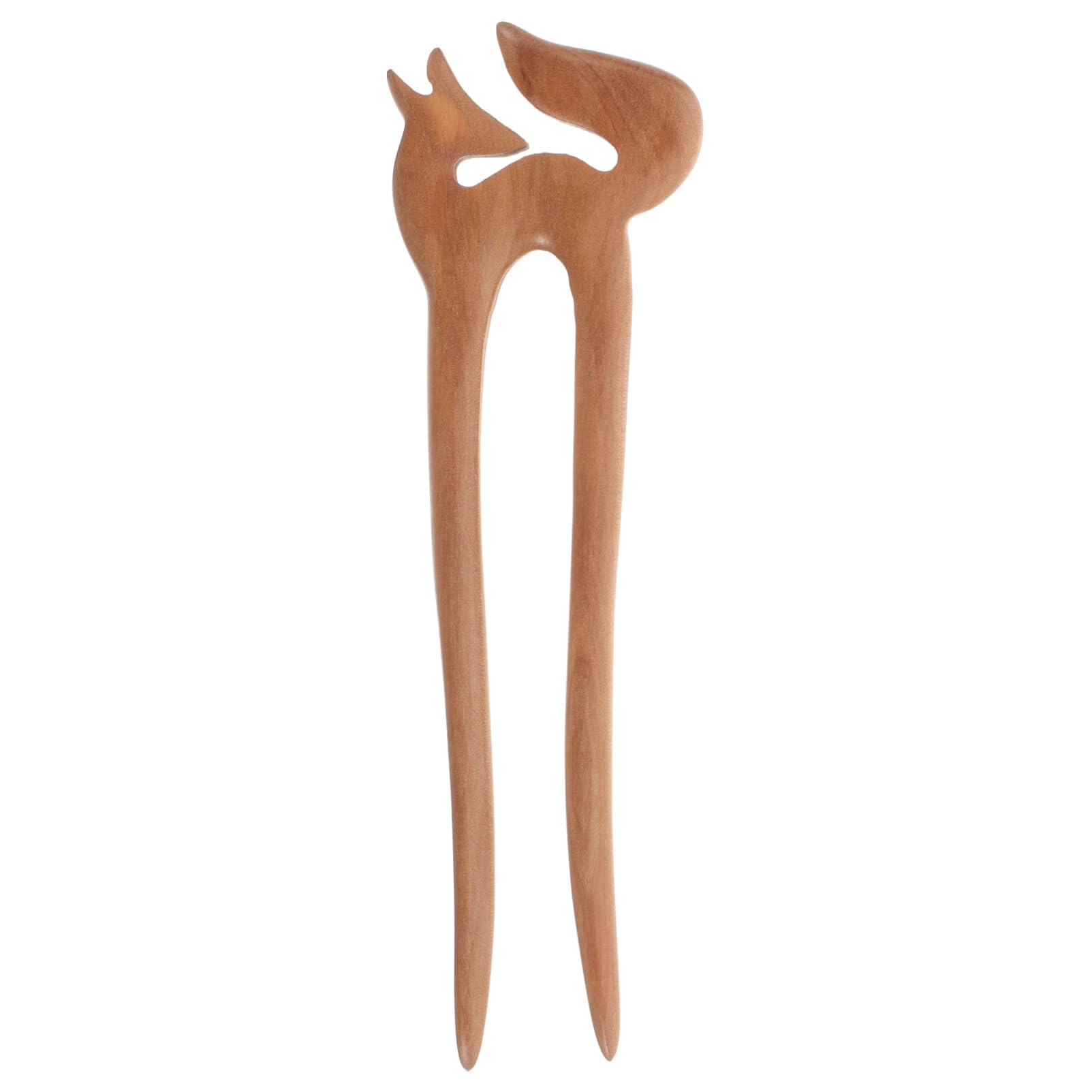 minkissy U Shape Wooden Hair Sticks Handmade Carved Ebony Sandalwood French Hair Forks with Cute Fox Design 2-prong Vintage Wood Hair Pins for Women Chignon Bun Updo Hairstyle