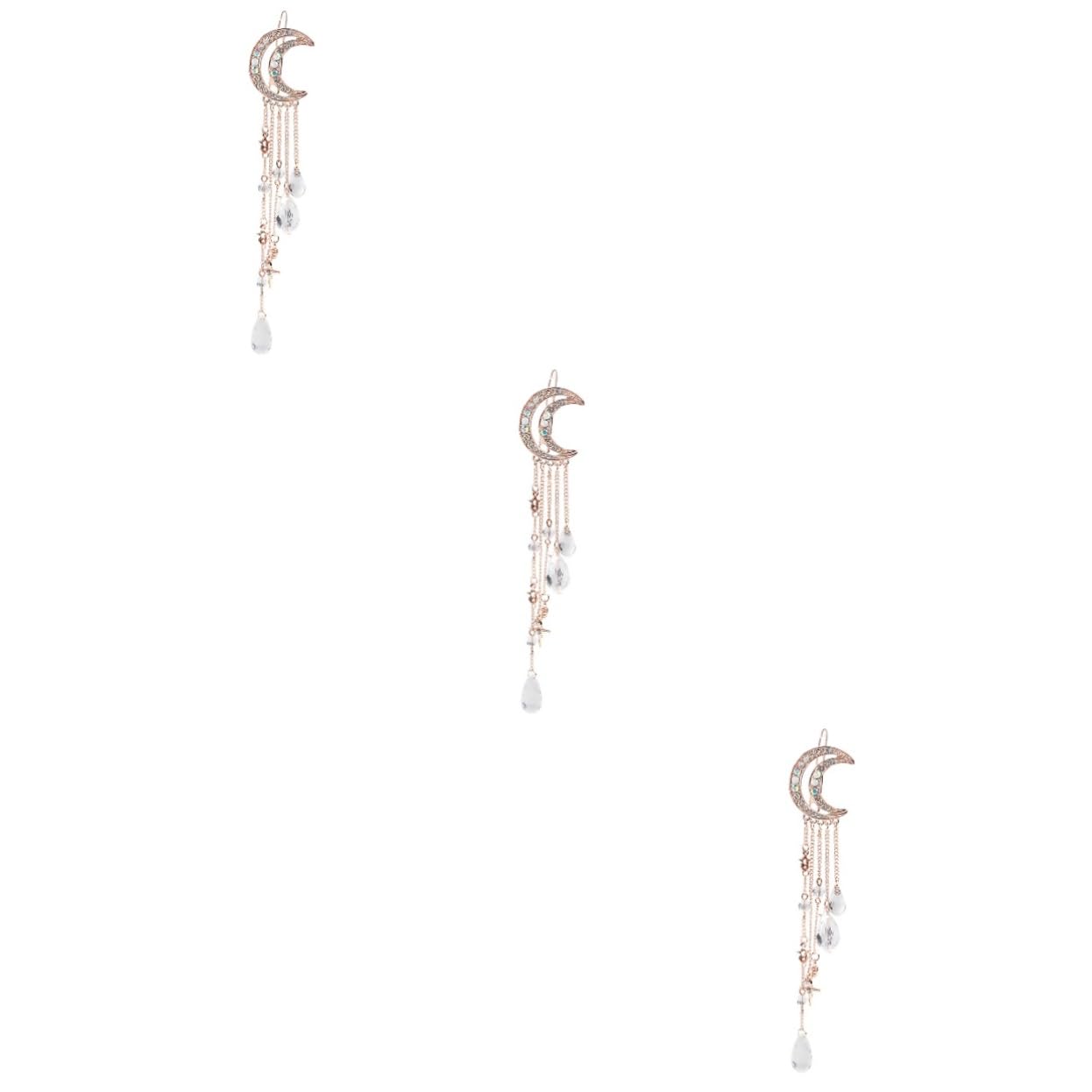 minkissy Wedding girl headpiece wedding barrette tassel hair pin bridal hairpin bead tassel barrette crystal charms hair clip tassel drop hairpin wedding headdress pendant moon Crystal