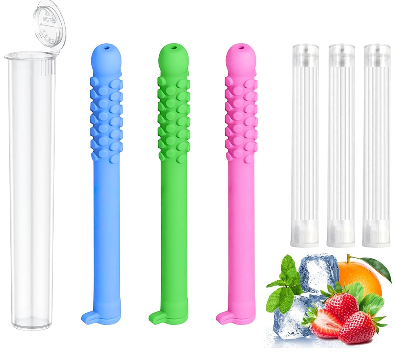 MINPO Chewable Essential Oil Breath Stick AromaticChewable Sticks with Essential Oil Reusable Food-Grade Silicone Stress Relief Tool with 12 Replacement Cores(3pcs)