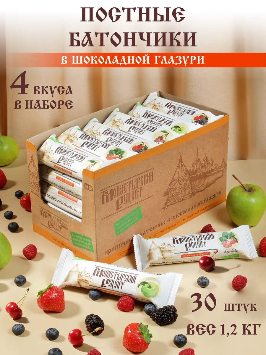 В коробке 30 постных батончиков, каждый весом 40 граммов.