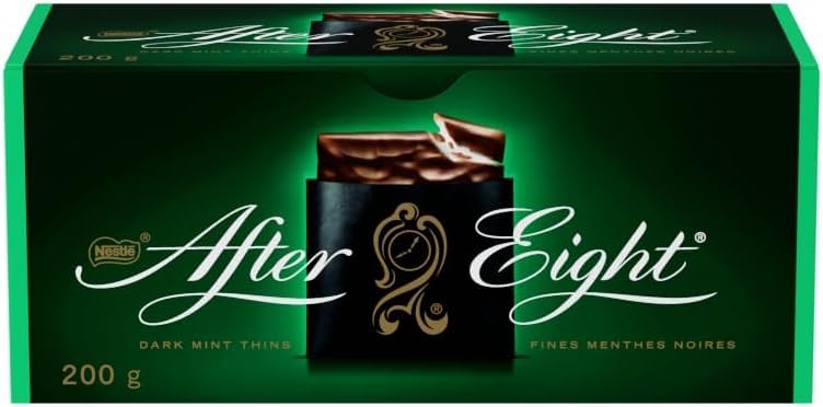 Entertain in style with NESTLÉ AFTER EIGHT mint thins. The perfect combination of luxurious mint fondant, enrobed in rich, dark chocolate. Each one individually wrapped in a special envelope for a delicate indulgence. Ideal for sharing and entertaining with friends and family, AFTER EIGHT is made with no artificial flavours. Celebrate all your festive occasions with AFTER EIGHT mint thins. Good times begin AFTER EIGHT!No Artificial Flavours: AFTER EIGHT chocolate mints are made with all natural flavours. Entertain With Style: These individually wrapped chocolate after dinner mints are ideal for sharing. Good Times Begin After Eight: NESTLÉ AFTER EIGHT classic dark chocolate mint thins are the perfect ending to any celebration. Decadent Indulgence: NESTLÉ AFTER EIGHT mint thins are the ultimate combination of luxurious mint fondant enrobed in rich, dark chocolate.