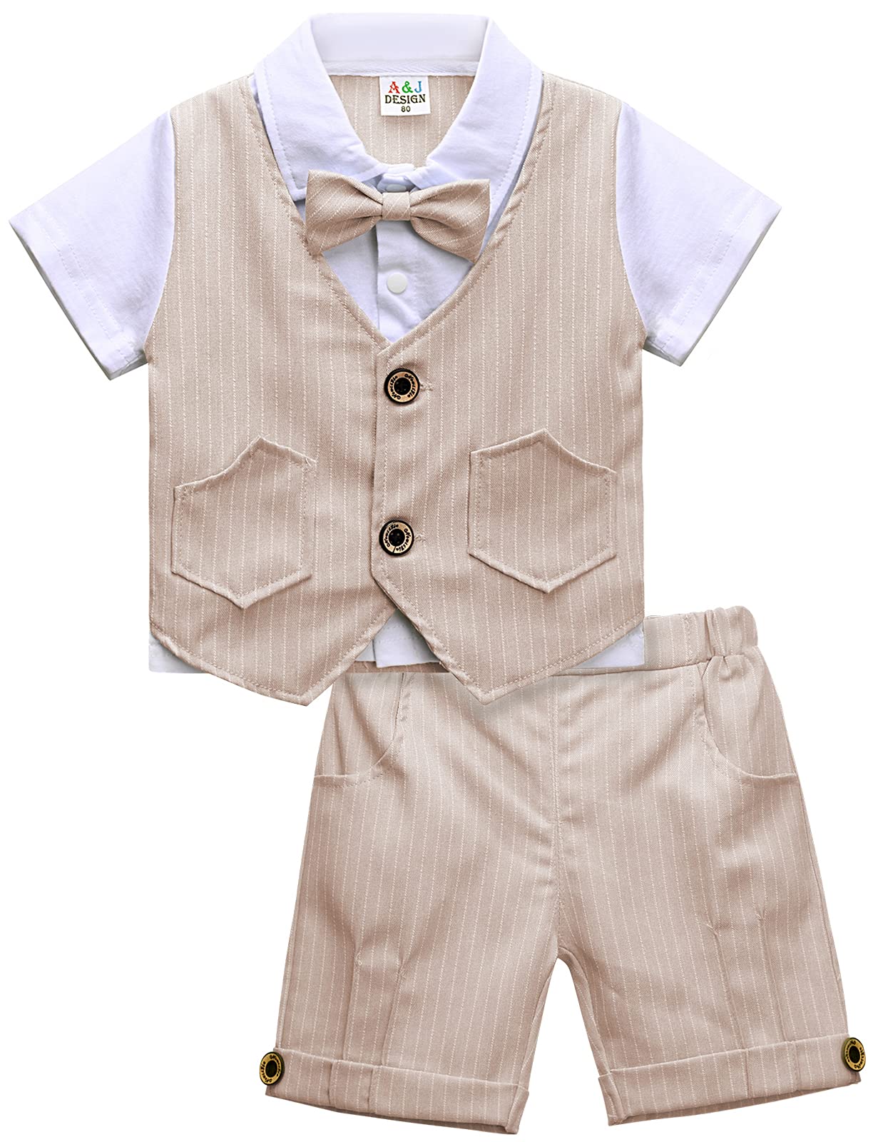mintgreen Two-Piece Baby Boys Gentleman Suit Infant Outfit Sets Short Sleeve with Pants 0-5 Years 2-3 Years Brown