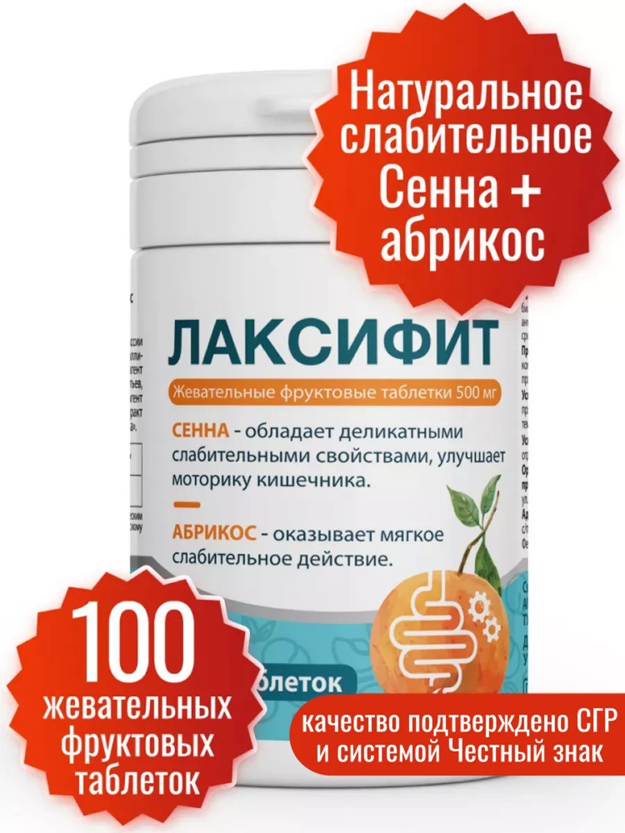 Препараты Миофарм более 8 лет продаются в аптеках по всей стране, что гарантирует высокое аптечное качество продукции, которое подтверждено СГР и системой Честный знак. Благодаря препарату Лаксифит от компании Миофарм вы забудете о неприятных моментах, вызванных запорами. Слабительное от запора способствует мягкому и комфортному освобождению кишечника, выведению из организма продуктов обмена, а также росту полезной микрофлоры. Слабительное восстанавливает работу желудочно-кишечного тракта, не раздражает слизистую кишечника и не вызывает привыкания. Слабительное от запора в таблетках содержит экстракт листьев Сенны (сенна трава), порошок плодов абрикоса, экстракт сухой листьев подорожника, экстракт сухой семян укропа. Сенна слабительное оказывает мягкое стимулирующее действие на интерорецепторы толстого кишечника. Формула от запора специально разработана для активации процесса детоксикации и похудения (слабительное для похудения). Слабительные средства от запоров, детокс для похудения помогают вашему организму избавиться от лишних токсинов и стимулируют метаболизм. Слабительное натуральное разработано с использованием тщательно отобранных натуральных компонентов, включая травы с легендарными слабительными свойствами. Забудьте о резких и неприятных ощущениях слабительные таблетки от запора обеспечивают мягкую реакцию, снимая дискомфорт и поддерживая нормальное функционирование кишечника. Взрослым принимать по 2 таблетки вечером во время еды. Таблетки слабительные для кишечника от запоров следует разжевать, можно запить стаканом воды. Слабительное действие наступает через 8-12 часов. При необходимости разовый прием можно увеличить до 4 таблеток. Лаксифит – это не только слабительное средство, но и ваш надежный союзник в поддержании здоровья кишечника.