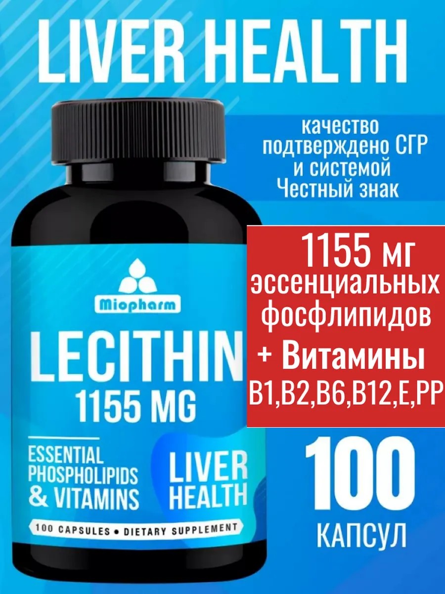 Miopharm products have been sold in pharmacies across the country for over 8 years, guaranteeing high pharmaceutical quality, confirmed by the State Register of Health and the Honest Sign system. Blueline Lecithin is a natural complex designed to support and strengthen the liver. Its formula, based on soy lecithin, milk thistle extract, and B vitamins, provides a range of beneficial properties. Soy lecithin reduces the risk of cardiovascular disease, promotes effective bile production, and has antioxidant properties. Lecithin contains essential phospholipids, silymarin, and vitamins important for liver function and protection, such as PP, E, B1, B2, B6, B12, and other beneficial components. Essential phospholipids transport beneficial nutrients, minerals, and vitamins to cells. Phospholipids strengthen the membranes of hepatocytes and liver cells, dissolve and remove excess fat from the liver, and help it cope with its daily work of purifying the blood. Milk thistle is a natural source of silymarin, an active ingredient. Silymarin is a hepatoprotector that promotes detoxification after heavy exercise or poor diet. Our lecithin capsules are made from high-quality raw materials, guaranteeing their safety. Liver vitamins are the building blocks of cells and support their health. Regular use of this vitamin complex can improve quality of life and overall well-being. The natural formula of this liver supplement effectively cleanses the liver and detoxifies the entire body. For maximum results, it is recommended to take it in courses. Adults take 1 capsule 3 times daily with meals. Duration of use: 1-6 months. Repeat treatment as recommended by a physician.