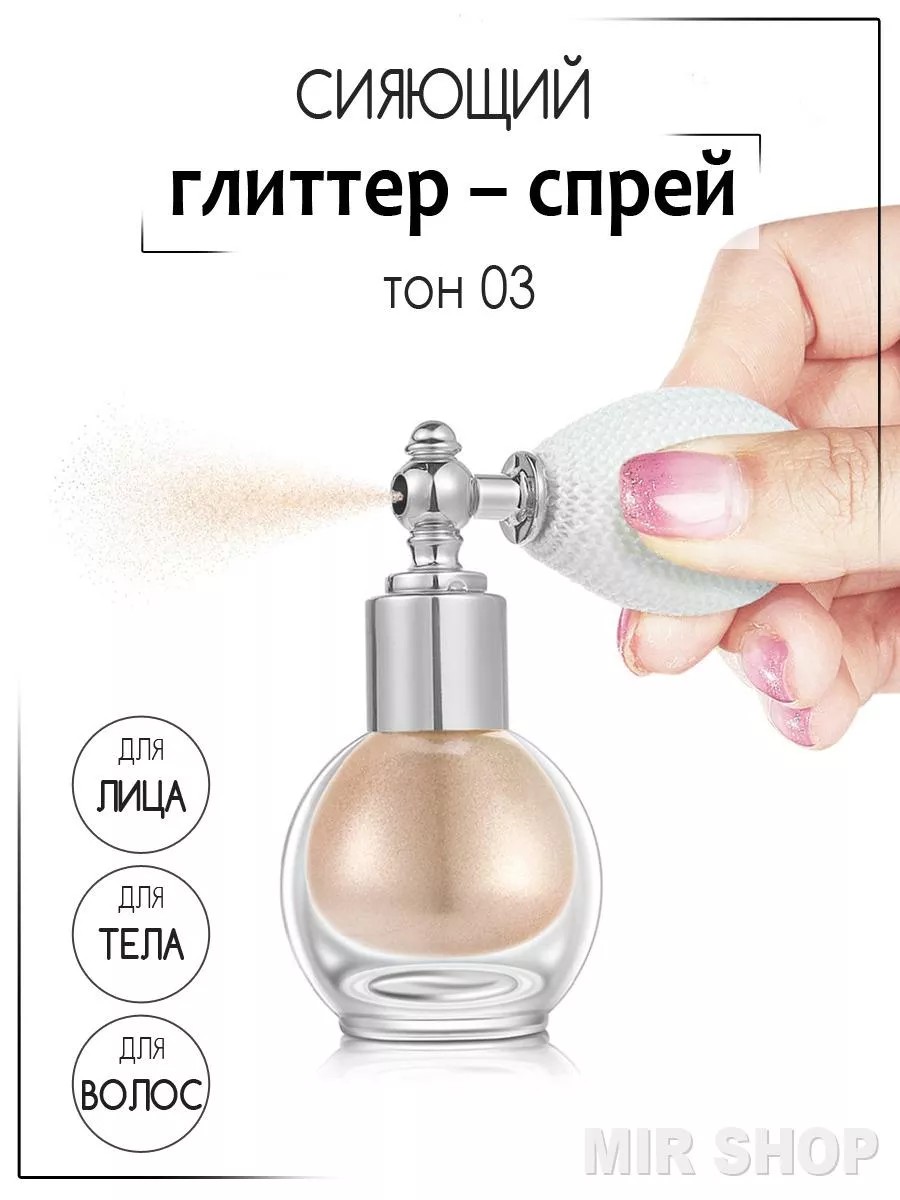 Хайлайтер для лица и тела. Рассыпчатая пудра-хайлайтер с эффектом мерцания в стильном флаконе. С помощью глиттера блестящего с распылителем Вы сможете корректировать форму и рельеф лица. Эффектное сияние сухой рассыпчатой пудры подчеркнет все достоинства и скроет недостатки. Удобное и многофункциональное средство в формате пудры. Плотность нанесения можно варьировать путем приближения или удаления распылителя со сверкающей пудрой. Глиттер-спрей сверкающий для лица и тела, Спрей для волос, Хайлайтер спрей, Пудра с распылителем и блестками, Глиттер, Пудра с шиммером, Спрей с блеском, Пудра спрей, Сверкающая мерцающая аэрозоль, шиммер, флакон глиттер. Подарок на 8 марта, подарок на день рождения, подарок на свадьбу, подарок на новый год, подарок на выпускной.
